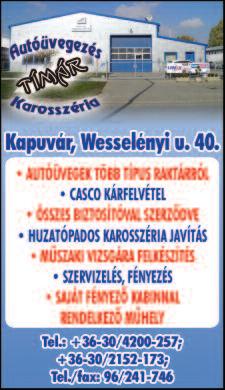 A Szuperinfó Csorna-Kapuvár lap hirdetési hetilapként fizetett hirdetéseket tar talmaz, melyek valódiságát szerkesztőségünk nem vizsgálja, a megjelent hirdetések tar talmáér t felelősséget nem vállalunk Jogszabályokba ütköző, etikailag kifogásolható hirdetések közlésétől szerkesztőségünk elzárkózik