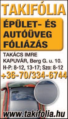 Hőkamerás vizsgálat, energetikai tanácsadás, energetikai tanúsítás, villamos felülvizsgálatok. Tel.: 3 0 / 9 5 6 4 - 7 7 1 , www szaboenergetika hu Redőnyök, reluxák, szalagfüggönyök, napellenzők, szúnyoghálók, harmonika ajtók, párkányok, zsaluziák stb, kedvezménnyel, garanciával, rövid szállítási határidővel 2001 óta a Megyében! Ingyenes kiszállás, árajánlat Tel: 06 30 235-0927 Horváth Attila www redonyosattila hu Kőműves munkát vállalok Betonozás, térkövezés, nyílászárók cseréje, kémények felújítása, tetőjavítás Tel : 06 70/388 8816