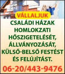 Vállalok ácsmunkát, bádogosmunkát, tetőfedést, cserepeslemezelést, kúpkikenést, széldeszkázást, SOS tetőjavítást, ereszcsatornázást, külső-belső festést-mázolást 06-70635-5762 Kedvezmény 30% 2024 06 20-ig