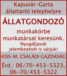 Középkorú, jól szituált, gazdasággal foglalkozó úriember keresi párját olyan független hölgy személyében (38 éves korig), aki a gazdaság vezetésében is társa lenne Csak komoly szándékú hölgyek jelentkezését várom! Érd.: 06-70/300-1688.