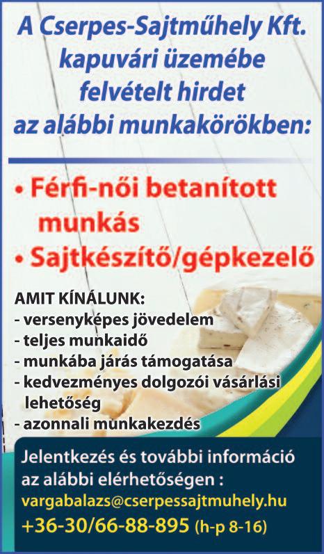 Kiadó a hirdetések tar talmáér t, azok valódiságáér t, harmadik személynek okozott jogsérelemér t felelősséget nem vállal Hirdetésekkel kapcsolatos reklamációt a megjelenést követő 5 napon belül fogadjuk, az általunk okozott hibáér t maximum a hirdetés díjának mér tékéig vállaljuk a felelősséget