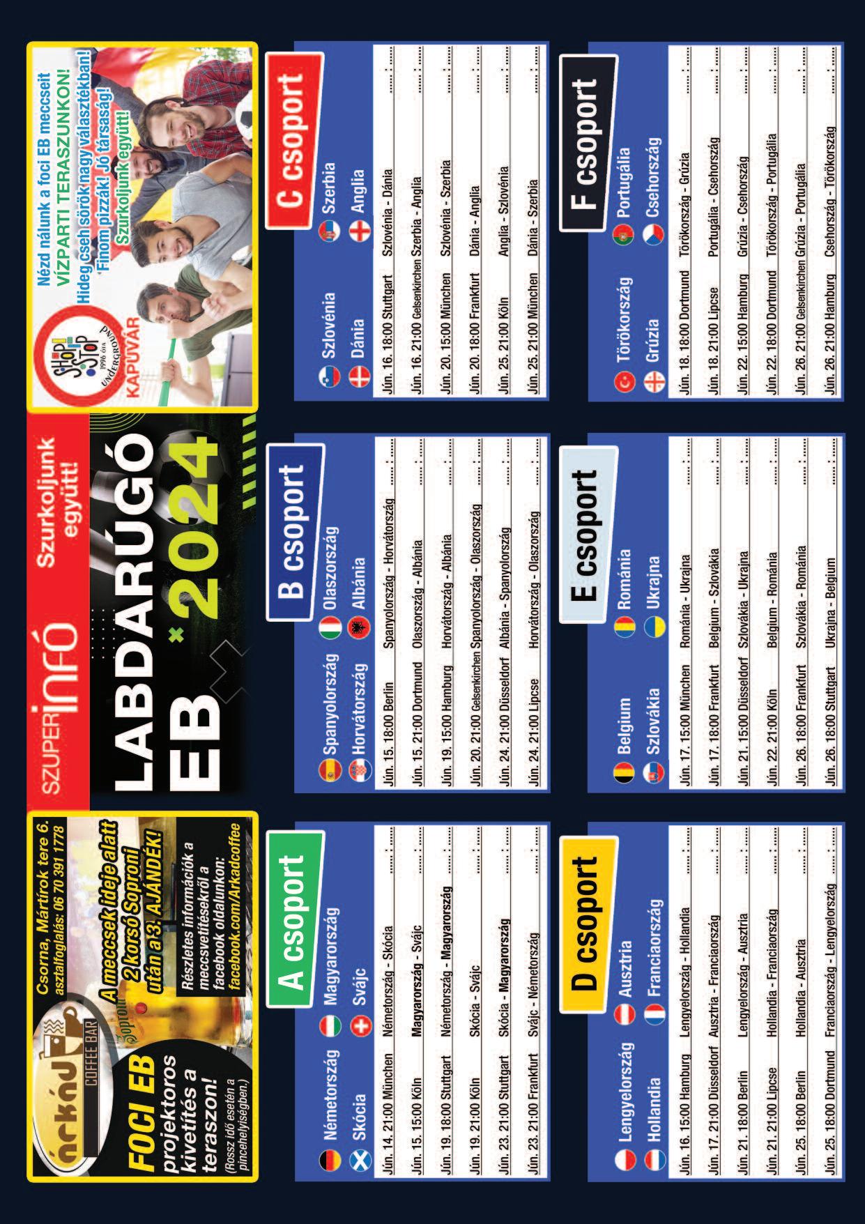 2024. június 14- én 21 órakor a Németország-Skócia mérkőzéssel kezdődik Münchenben a 17. labdarúgó Európa-bajnokság, amely július 14- én a berlini Olimpiai Stadionban fejeződik be.