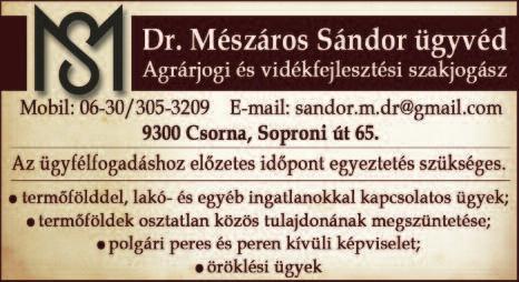 Szerkesztőség: 9300 Csorna, Kismar toni u 2/a Tel: +36 309370 651
