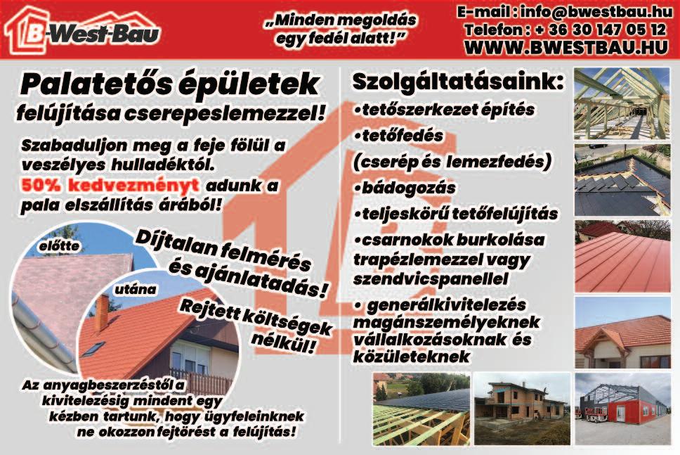 Tetőfedést, ácsmunkát, bádogosmunkát, cserepeslemezelést, tetőáthajtást, széldeszkázást, tetőjavítást anyagbeszerzéssel vállalunk Kedvezmény 25% 2024.06-20-ig. 06-20-289-3828