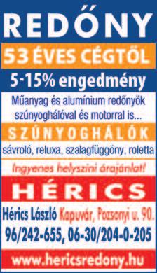 Hőkamerás vizsgálat Energetikai tanácsadás Energetikai tanúsítás Villamos felülvizsgálatok 30/9564-771 www szaboenergetika hu Redőnyök, reluxák, szalagfüggönyök, napellenzők, szúnyoghálók, párkányok, harmonikaajtók stb kedvezménnyel, garanciával 10 napos szállítási határidővel mosonmagyaróvári szakembertől kérjen ingyenes árajánlatot Vidéken is 0630/2350-927 Horváth Attila