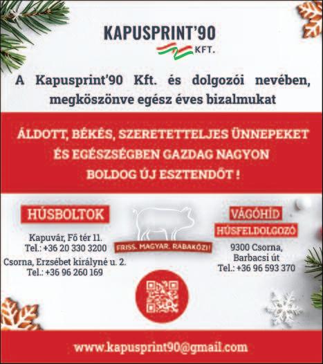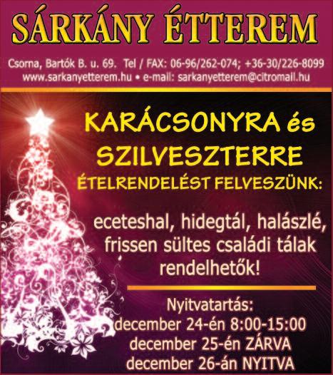 Szerkesztőség: 9300 Csorna, Kismar toni u 2/a Tel: +36 309370 651, e -mail: csorna-kapuvar@szuperinfo.hu