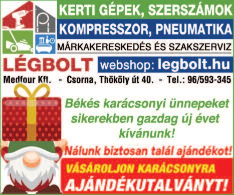 Kiadó: INFOREKLÁM Kft 9300 Csorna, Kismar toni u 2/a; Tel: +36 30 9370 651; Felelős kiadó: Tárkányi Mária ügy vezető