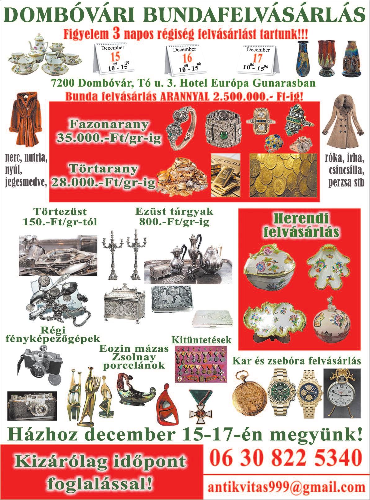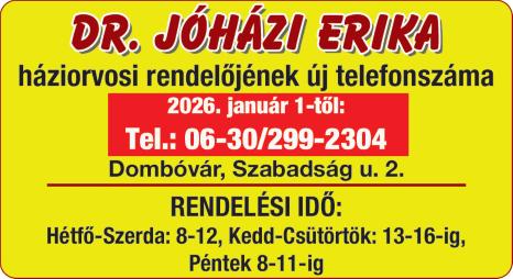 Dombóvári Véradó: Kórház I. emelet, minden kedden és csütörtökön 8-15 óráig