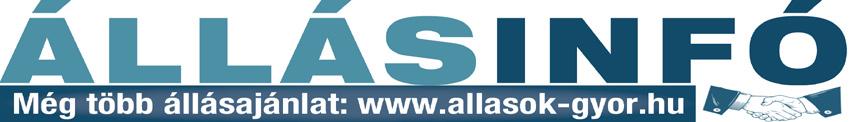 72022. NOVEMBER JÁRMŰ-FELÉPÍTMÉNYGYÁRTÓ CÉG keres az alábbi munkakörökre kollégákat PANNONHALMI munkahelyre: - Hegesztő - Lakatos - Karosszérialakatos - Járműgyártó - Vasipari munkás valamint ügyes segédmunkásokat a gyártási részfolyamatok végzésére. Egyműszakos munkarend, jó csapat, versenyképes fizetés. Érdeklődni a 06 70/313-73-73 -as telefonszámon lehet. 22110005 A WKW Hungaria Kft. bővülés miatt várja új munkatársait OPERÁTOR ÉS GÉPKEZELŐ munkakörbe azonnali kezdéssel. Megújult környezetben 22110008 Plelunk az elelurk Plelunk az elelurk 22110002 VÁLASSZ MINKET, CSATLAKOZZ HOZZÁNK! • Munkanapokon