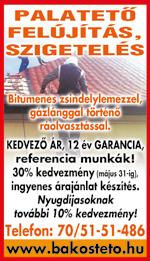 Tetőfedés, bádogos, ácsmunka, cserepeslemez-fedés 5000 Ft/m˛ anyagbeszerzéssel, tetőjavítás, ereszcsatornázás, lapos-tető szigetelés, kisebb javítások. Kedvezmény 25% 2024.05.30-ig. Tel.: 06-20-977-2731