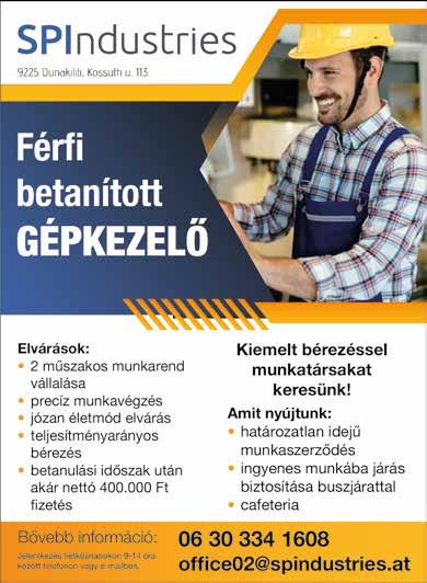 Munkarend: 09.00-15.00 óráig, vagy 15.00-22.00 óráig. Érdeklődni lehet délelőttönként telefonon a: 06-30-646-2520 vagy 06-96/566-439-es telefonszámokon, illetve délelőttönként személyesen: Mosonmagyaróvár, Kolbai u. 4., a Malomszer üzletház mellett. Mosonmagyaróváron üzemi segédmunkára férfi munkaerőt keresünk. Azonnali belépéssel! Tel.: 06-20-977-4302