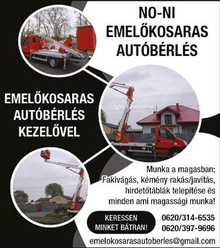 Hasogatás, bozótirtás, fűés sövénynyírás, elhanyagolt kerek, udvarok rendbetétele, zöldhulladék elszállítás. Hétvégén is! Tel.: 06-20-9139-131 Ácsmunka, tetőkészítés, cserepeslemez-fedés, bádogos munka, széldeszkázás, ereszcsatornázás, SOS tetőjavítás, lapos-tető szigetelés, beázás javítás anyagbeszerzéssel kedvezően! Tel.: 06-30749-5485, 06-20-227-6965