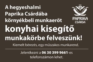 Szakács, főzni tudó konyhai kisegítő, vagy nyári diákmunkára konyhai kisegítő munkavállalót felveszünk levéli étterembe. Útiköltséget térítjük! Tel.: 06-70-611-9903 Ács-állványozót felveszek. Heti bérezés! Tel.: 06-30-262-9157