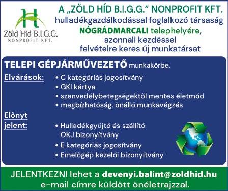 Jelentkezni személyesen h.–p. 9–16-ig. Salgótarján, Fő tér 1., II. em., 2. a. E-mail: munka135@gmail.com Tel. (h.–p. 9–16-ig): 06-20/626-5850