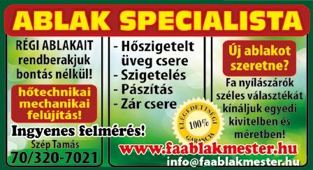 KŐMŰVES VÁLLAL: kisebb-nagyobb felújításokat, fürdőszobát, vakolást. Térkövezést, melléképületek felújítását. Salétromos, repedezett falak helyreállítását, kémények kúpolását, javításokat. T.: 06-70/362-0441, 06-20/341-0969. Ács, tetőfedő, bádogos, mindenféle régi tető felújítását, beázás megszüntetését, bádogozást, széldeszkázást, cserepeslemezelést is vállal. 06-30/456-9398, 06-20/617-7616.
