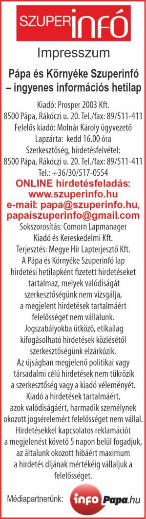 Lapunkat és híreinket elolvashatja a www.papaiszuperinfo.hu weboldalon.
