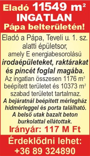 Pápán az Öreghegyben 2036 nm-es telek villannyal,fúrt kúttal,állattartásra alkalmas épülettel eladó. Irányár 6,5 M Ft. Tel.:+36/704545255
