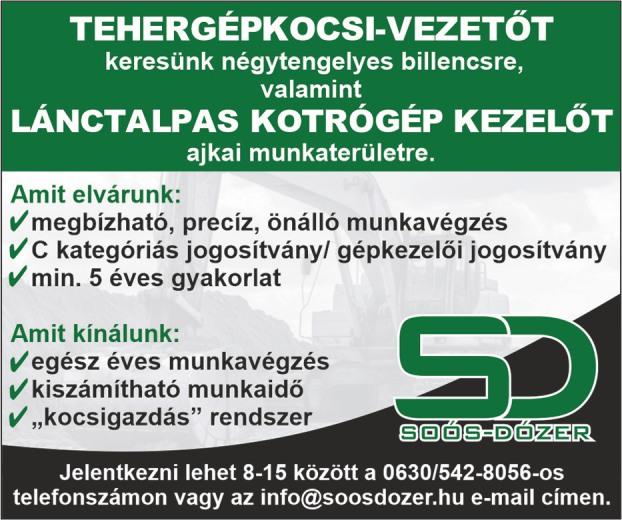 Mezőlaki üzemünkbe keresünk karbantartó kollégát a gyártó berendezések elektromos és mechanikus karbantartására. Targoncavezetői engedéllyel és gyakorlattal rendelkezők előnyben. Fényképes önéletrajzot az info@foldeszsak.hu címre várjuk. (Földes-zsák Kft.)