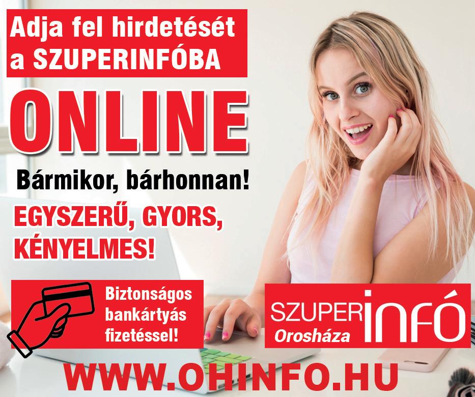Orosháza, Könd u. 25. • Tel.: (68) 512-252 • Online hirdetésfeladás: www.ohinfo.hu • E-mail: oroshaza@szuperinfo.hu