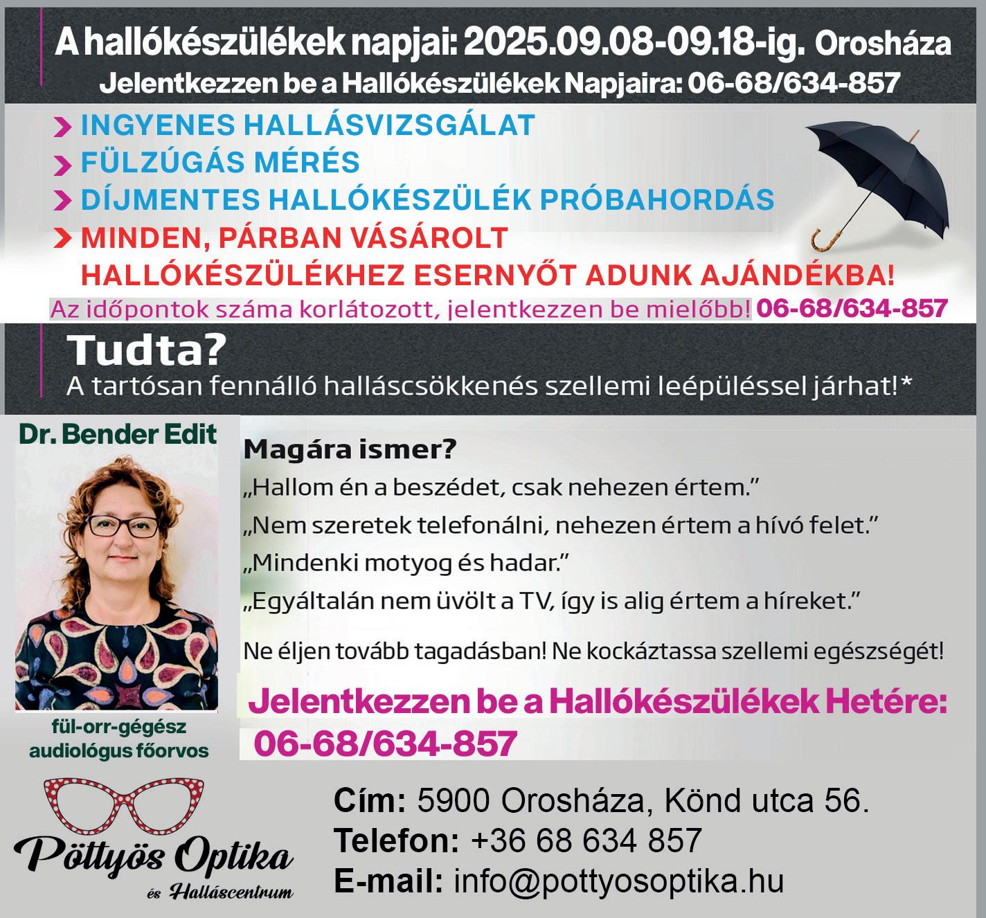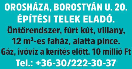 Orosháza, Könd u. 25. • Tel.: (68) 512-252 • Online hirdetésfeladás: www.ohinfo.hu • E-mail: oroshaza@szuperinfo.hu