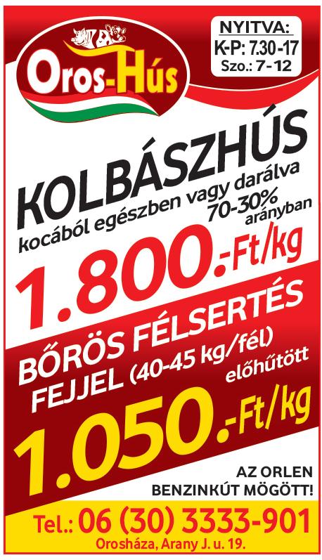 • Sertés hasítva (élősúlyban mérve) 1.099 Ft/kg. Ez az ár tartalmazza a hentes bérét a gázpalackot és a kiszállítást. Tel.: 06-70/725-8431