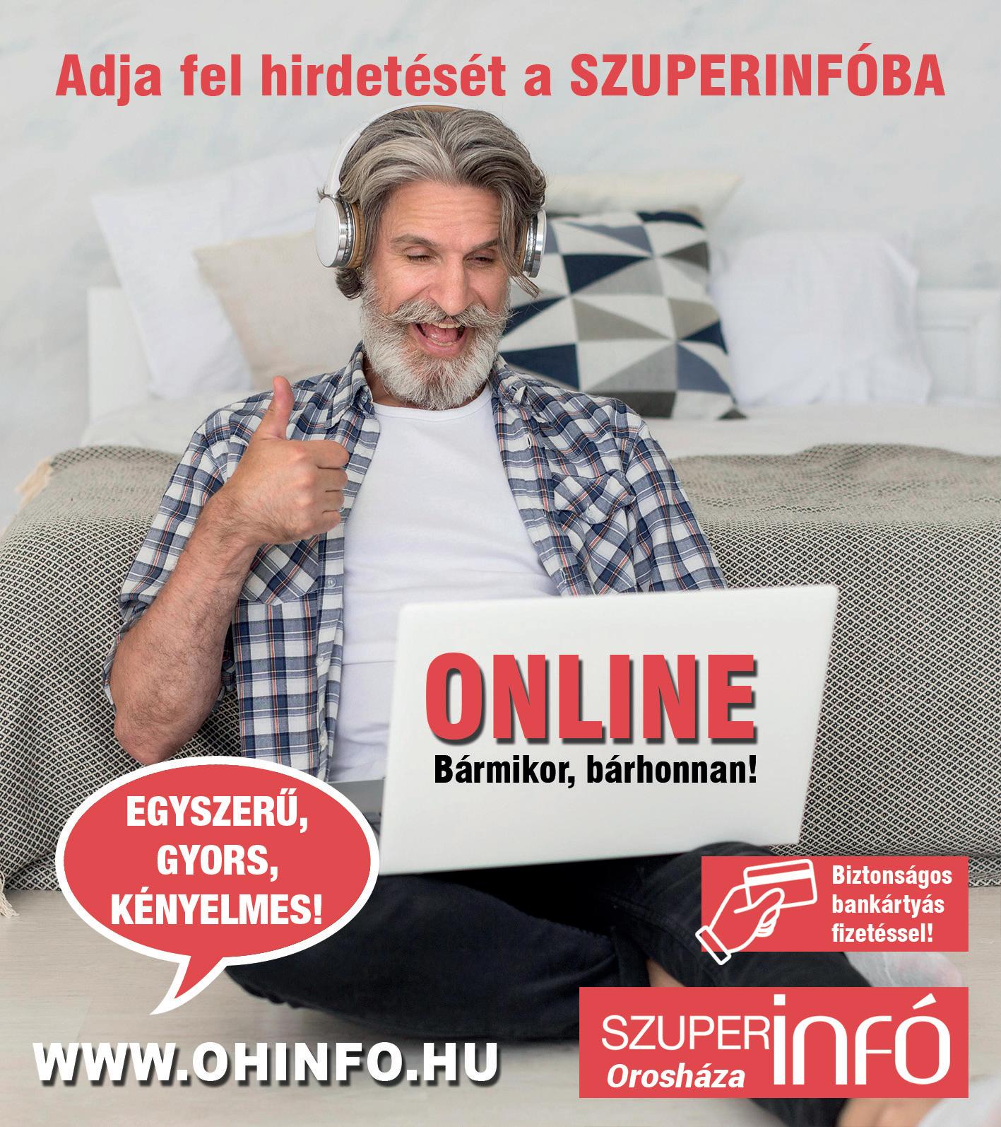 A Szuperinfó fizetett hirdetéseket tartalmaz, melyek valódiságát a szerkesztőség nem vizsgálja, tartalmáért felelősséget nem vállal. A kiadó előzetes engedélye nélkül a lapban megjelent hirdetéseket felhasználni tilos!