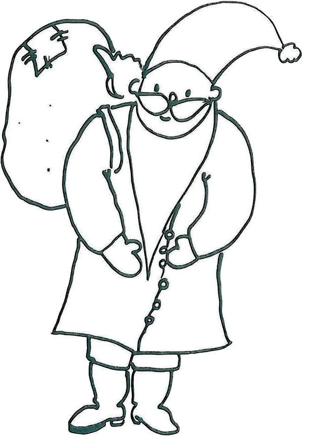 Karosszékben üldögél, szakálla a földig ér, leveleket olvasgat, ajándékot rakosgat.
