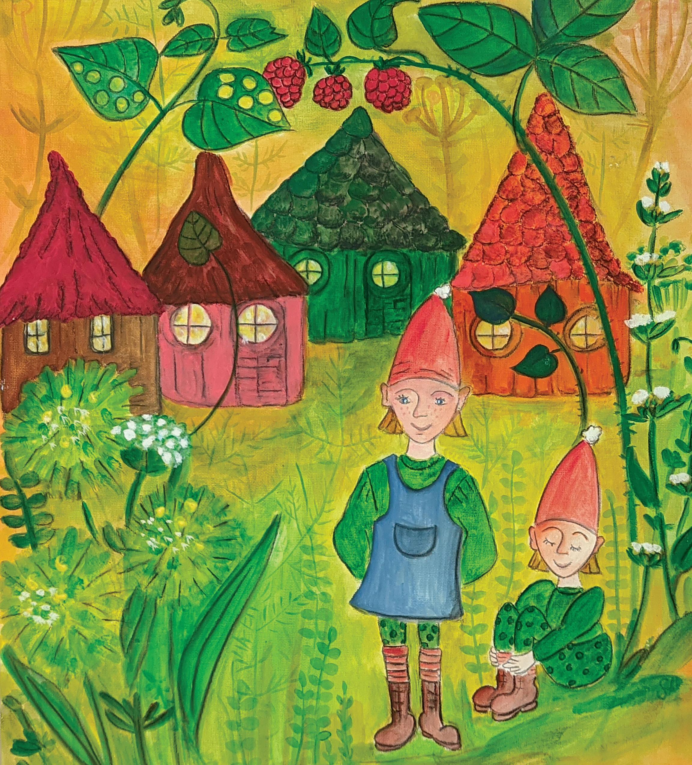 Kicsi házak sorakoznak manóvidék közepén, minden háznak van gazdája, egy manó és egy kistestvér.
