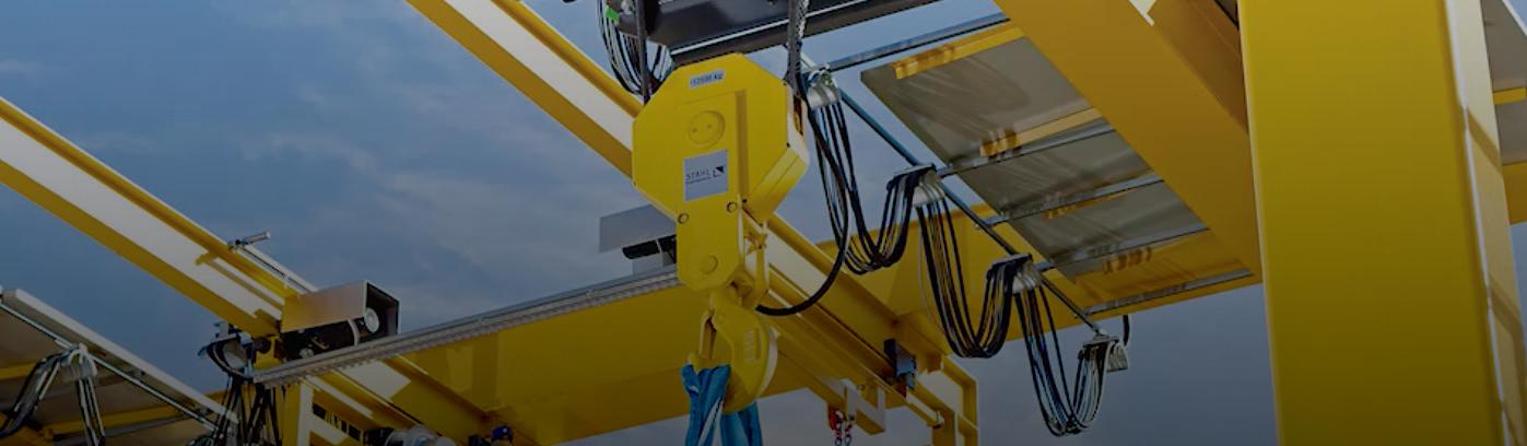 Darurendszer részeként használatos STAHL CraneSystems drótkötélemelők.