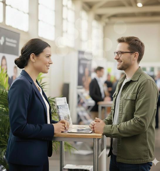 Amikor odalépsz a kiállítói standhoz, akkor pár mondatban érdemes bemutatkoznod. BÁTORSÁG! Nem csak Te keresel állást, de ők is munkaerőt. Szólítsd meg a cégek munkatársait! Mutatkozz be, kérdezd meg, milyen ajánlataik vannak, és mondd el, Te mihez értesz, mit tanultál.