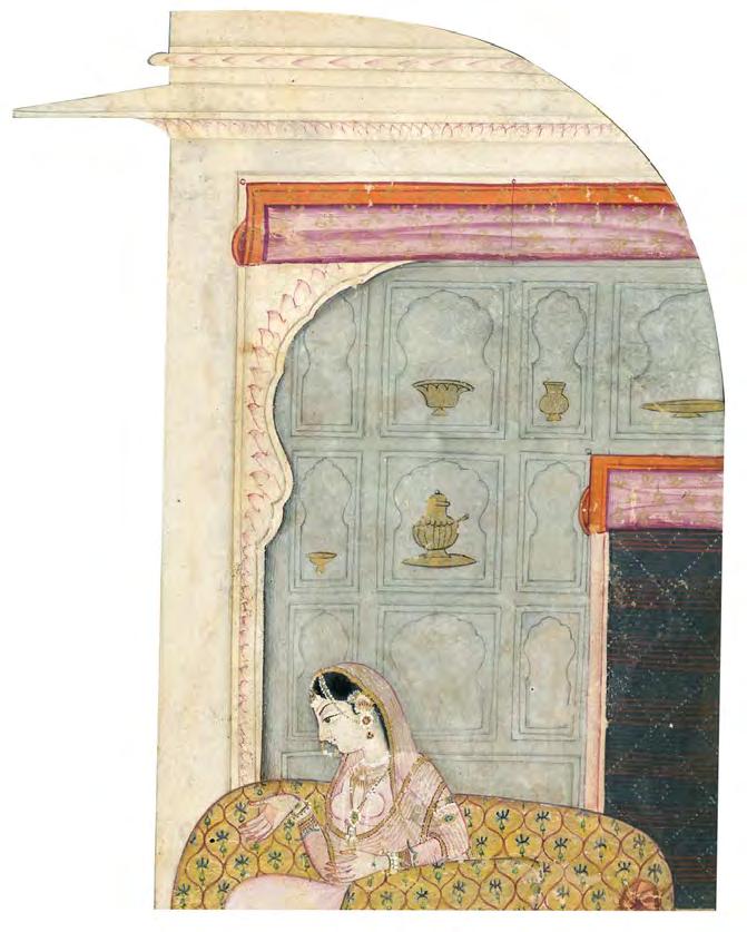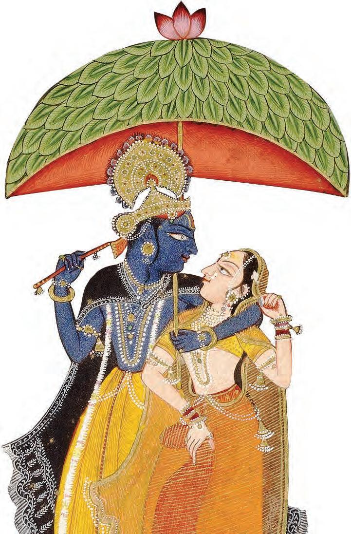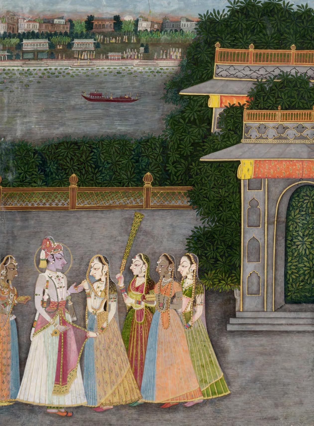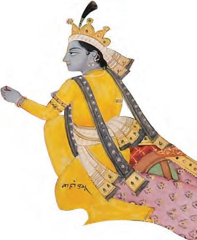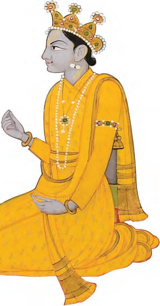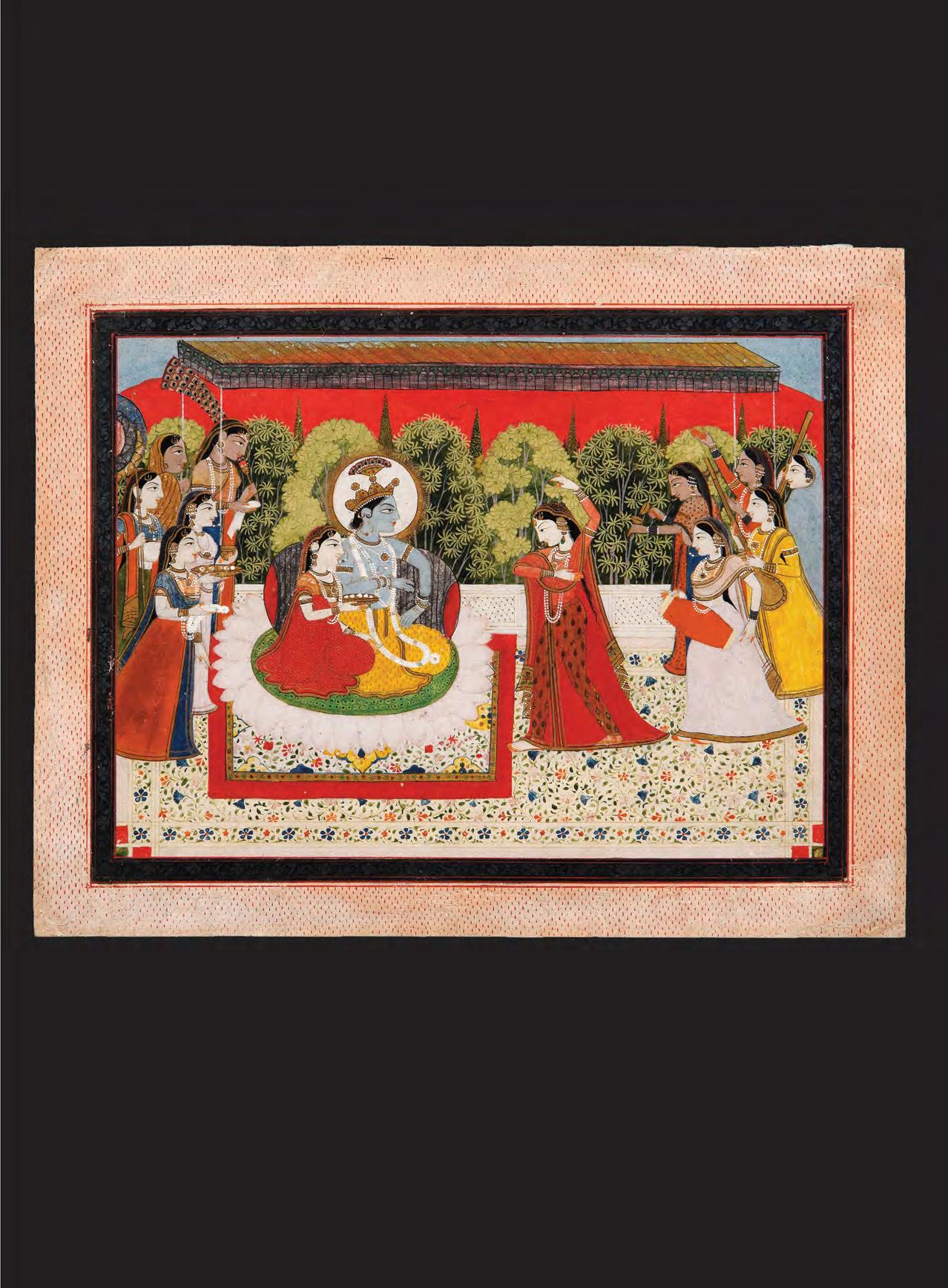 In the rst quarter of the 18th century, Krishna became the prime subject of painting over court scenes and portraits of rulers. Towards the later part of the century, stylistic elements from the Mughal court were likely adopted through the settlement of artists from Delhi or Lucknow in Bundi,