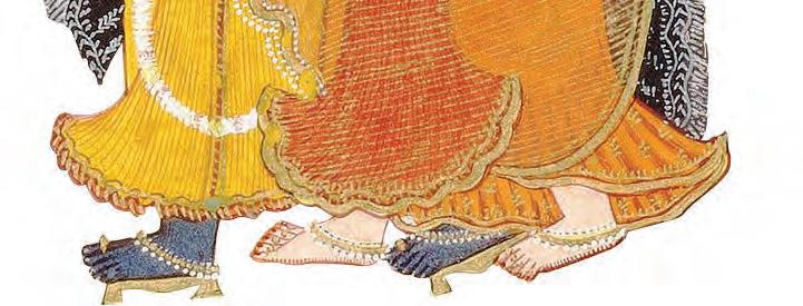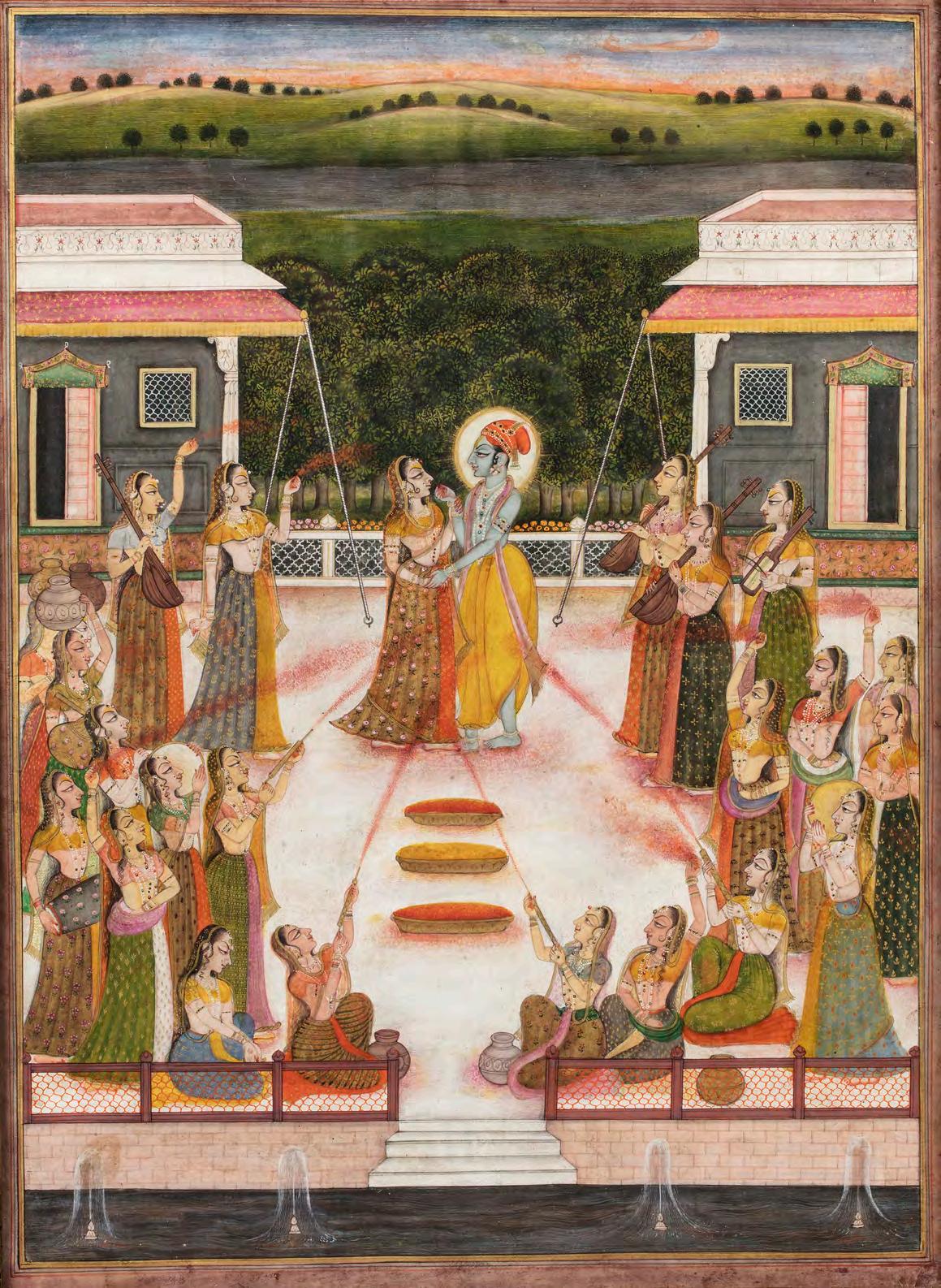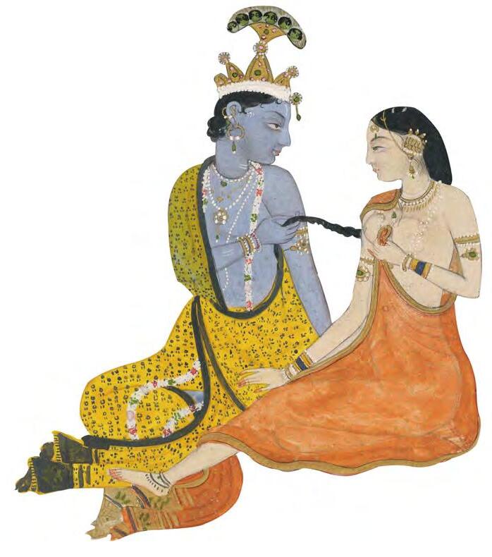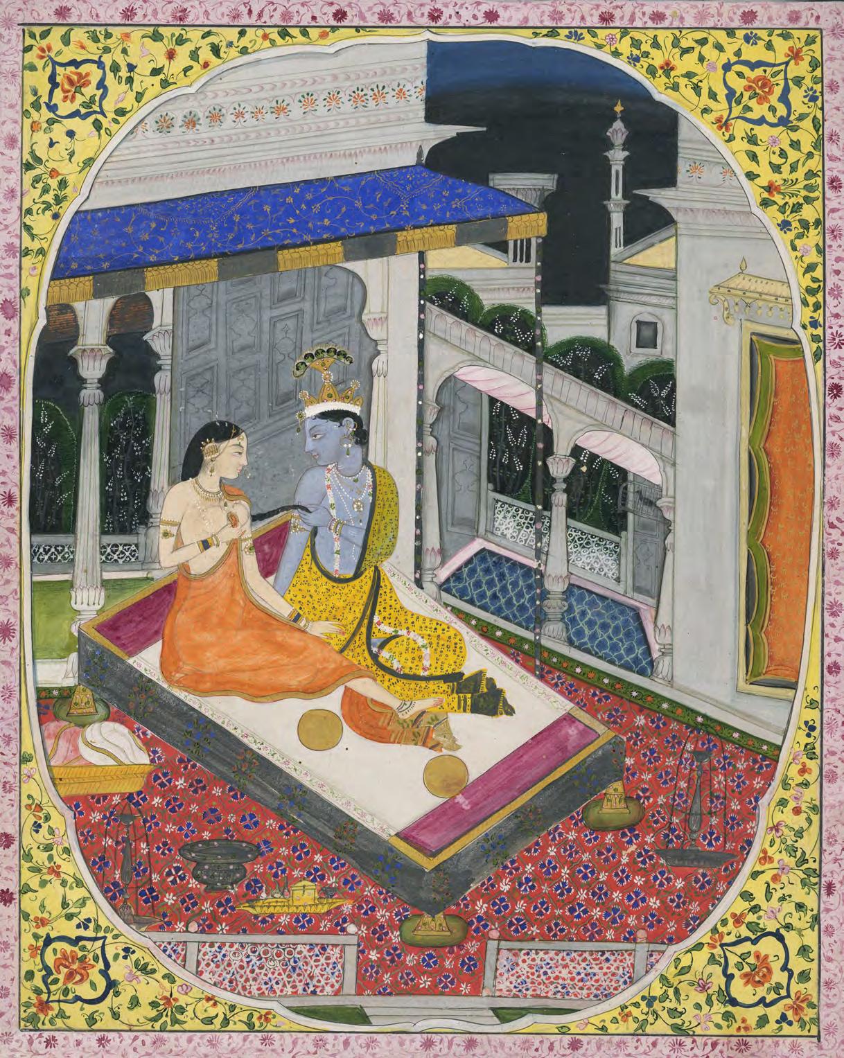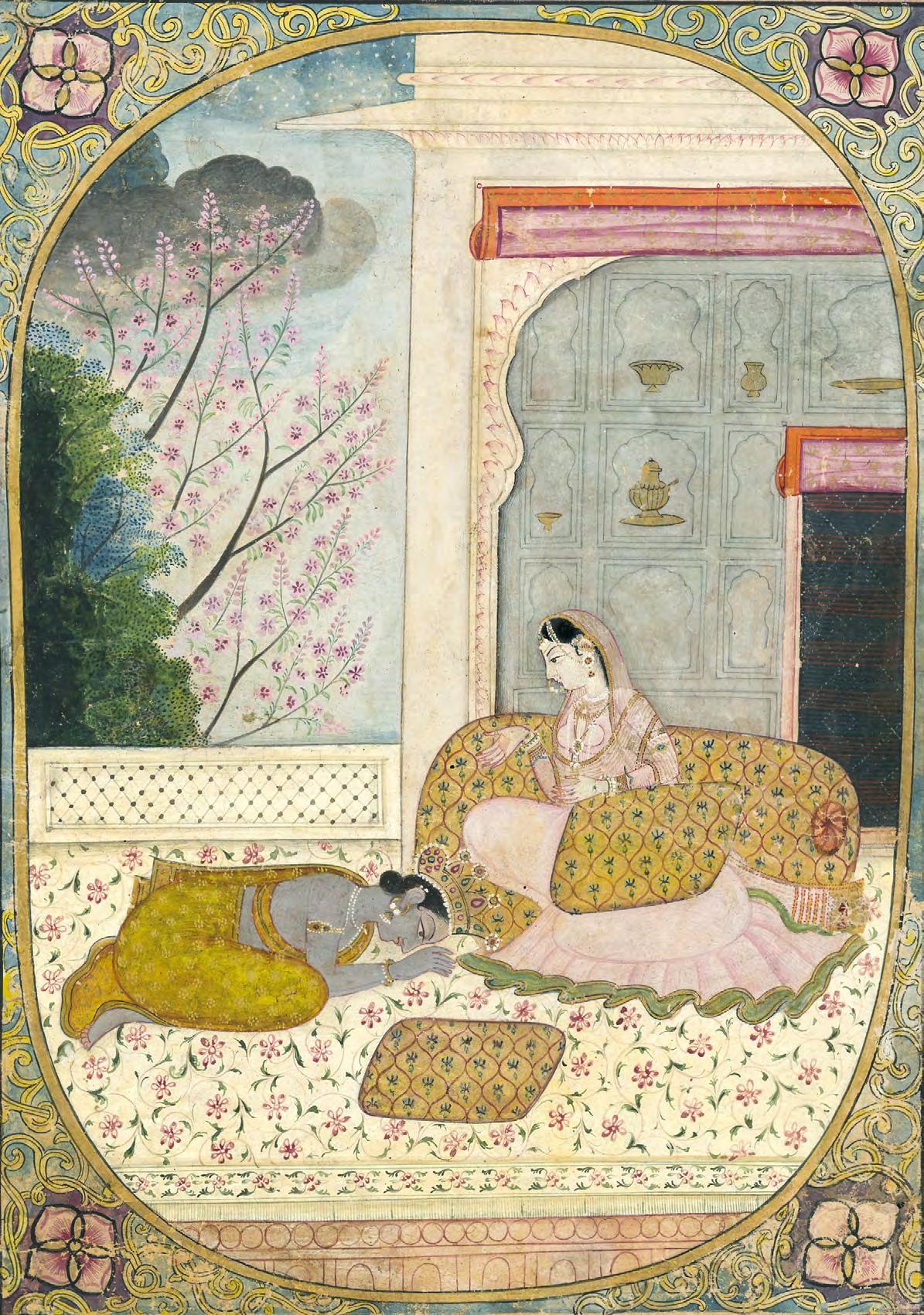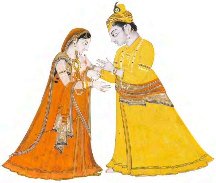 In the rst quarter of the 18th century, Krishna became the prime subject of painting over court scenes and portraits of rulers. Towards the later part of the century, stylistic elements from the Mughal court were likely adopted through the settlement of artists from Delhi or Lucknow in Bundi,