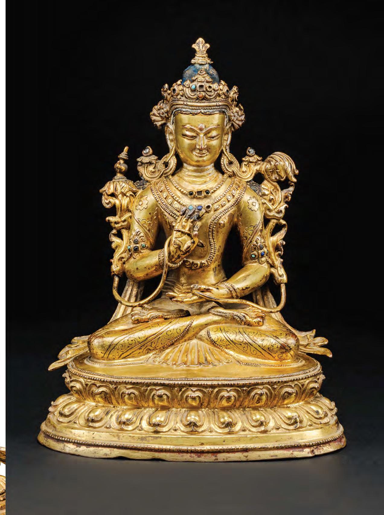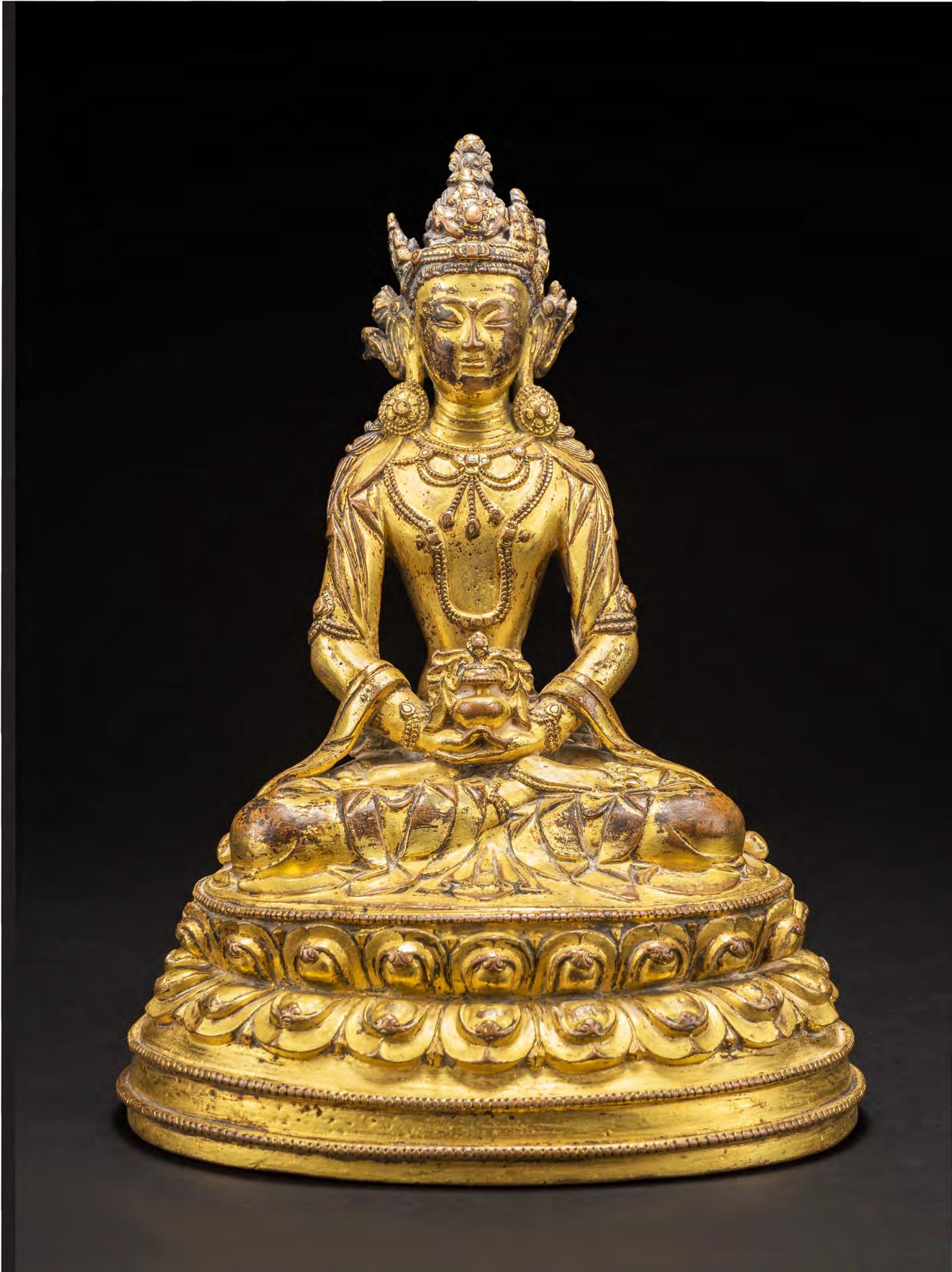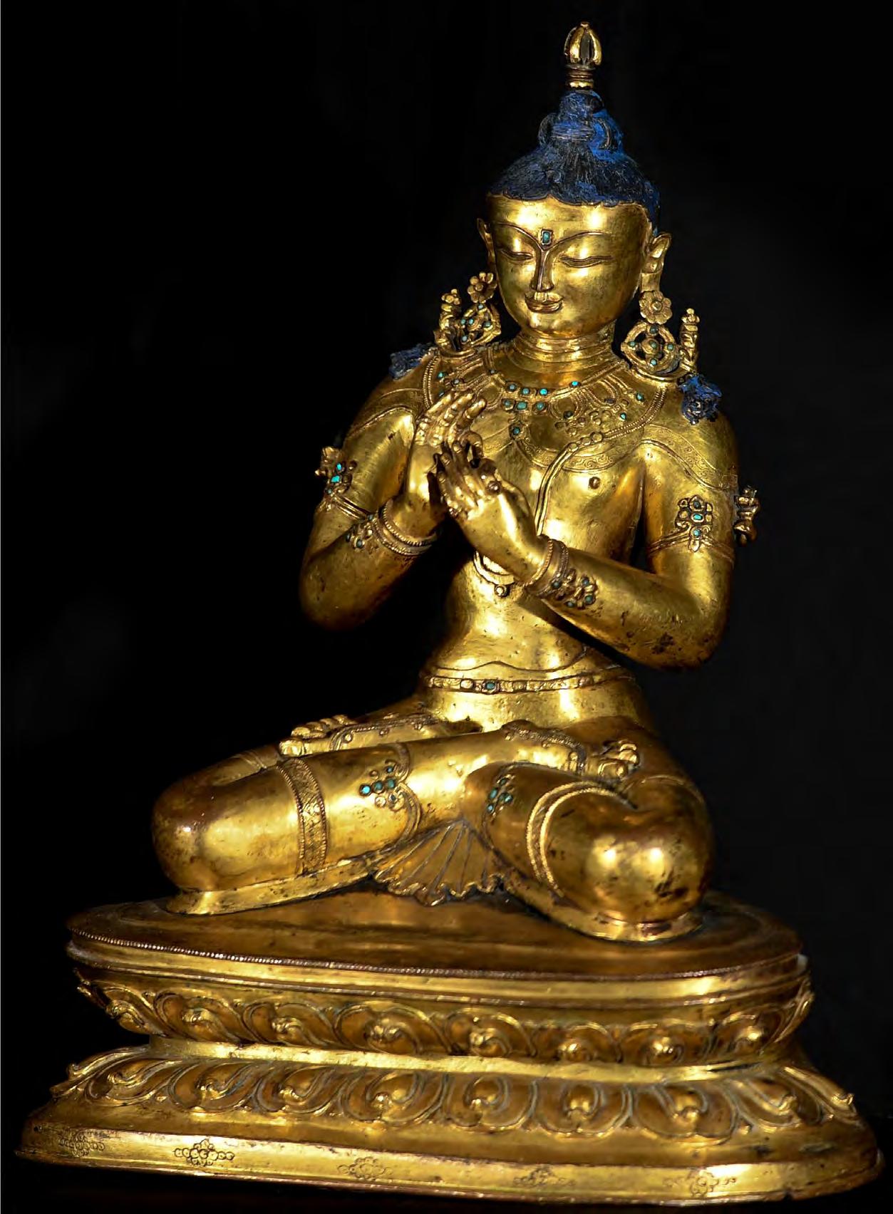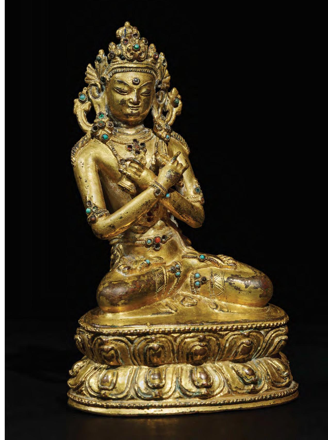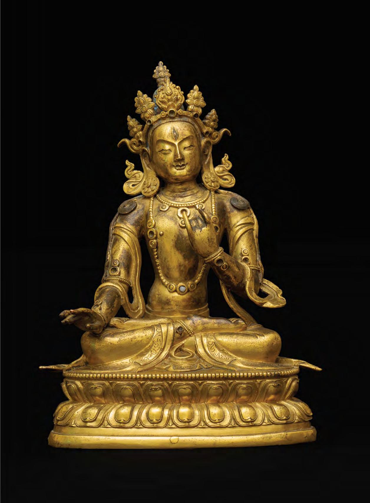 Compare with a Manjughosa held in the Shalu monastery, published in von Schroeder, , 2001, pp.959, no.229C. Also see a 14th century Vajradhara in the Jokhang in Lhasa, (ibid., p. 962, no. 231E), and a closely related gure in scale and detail sold at Sotheby’s, New York, 23 March 2007, lot 55.
