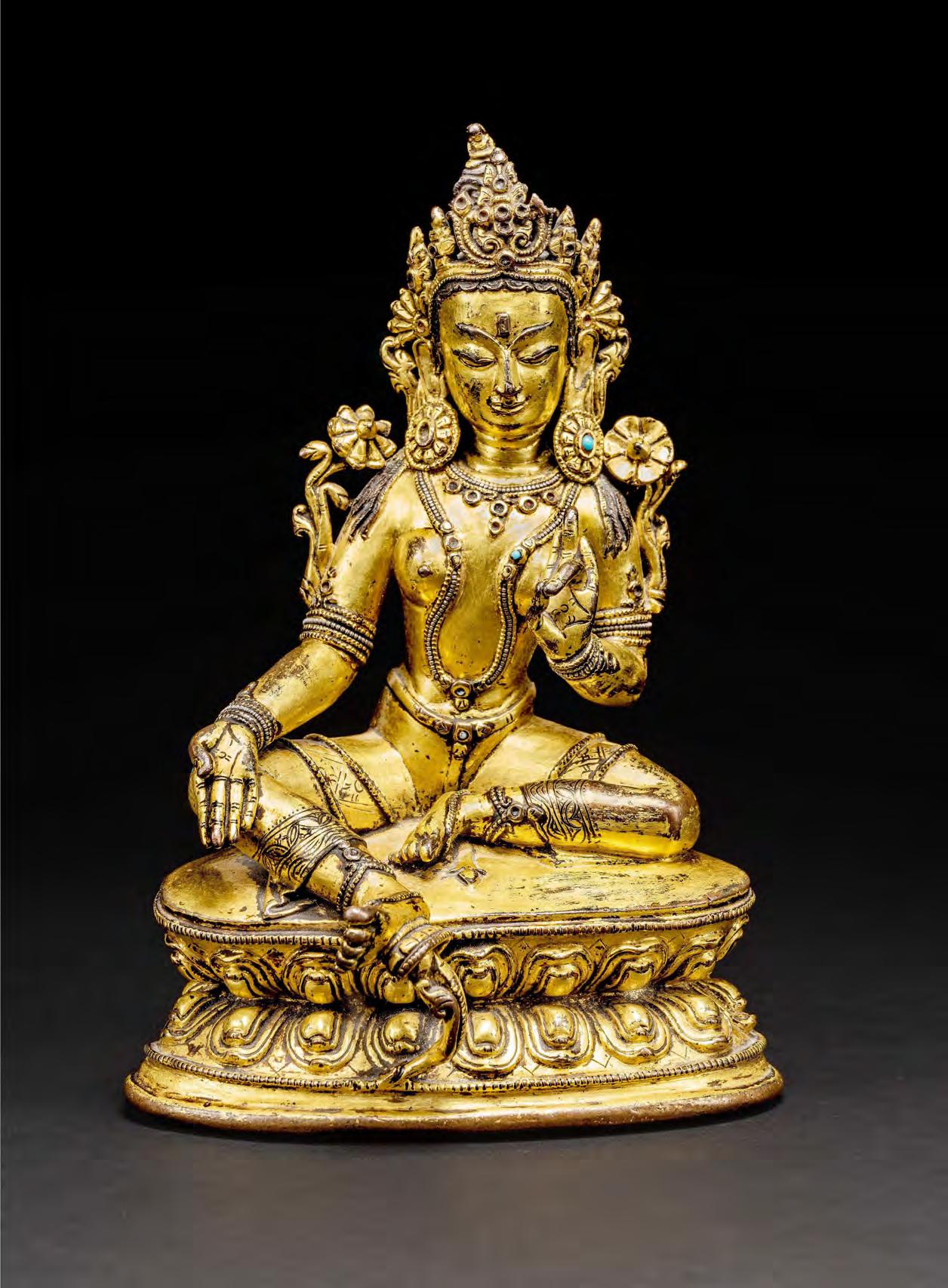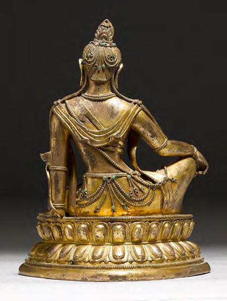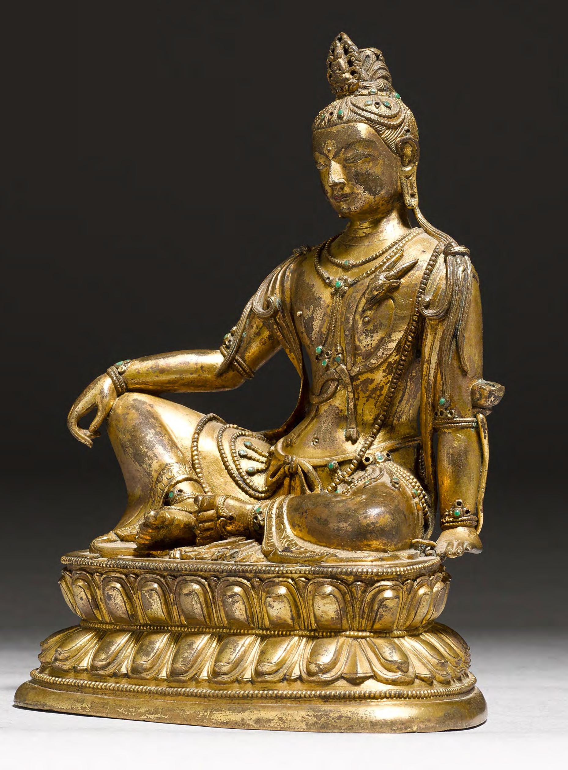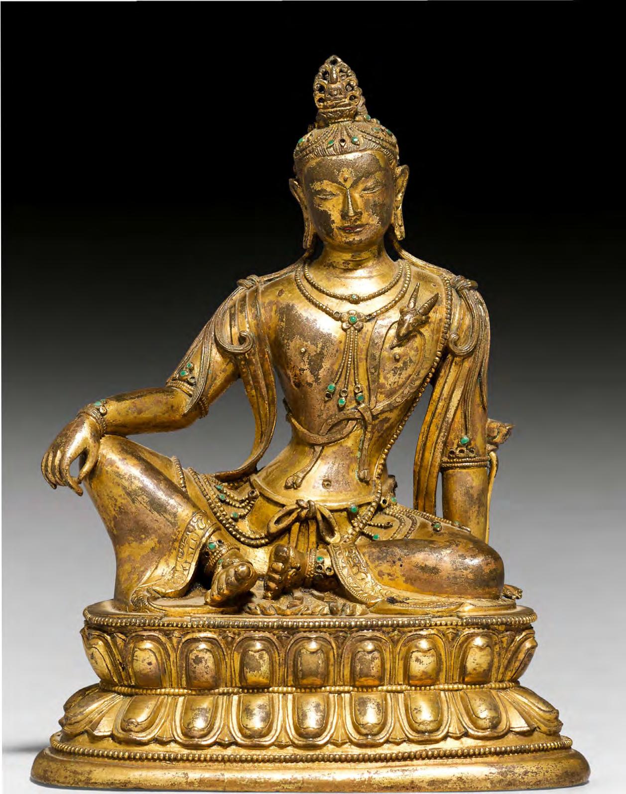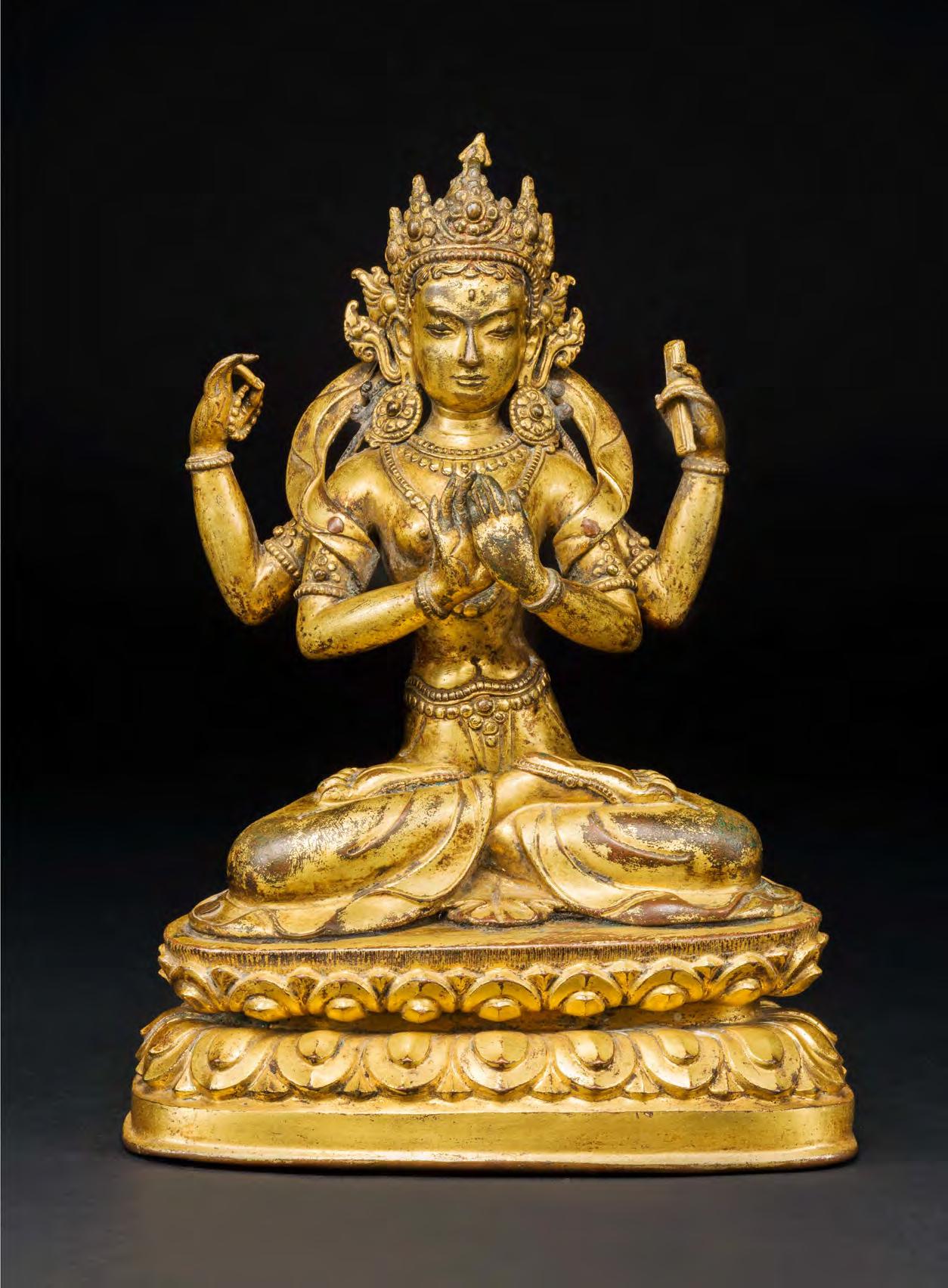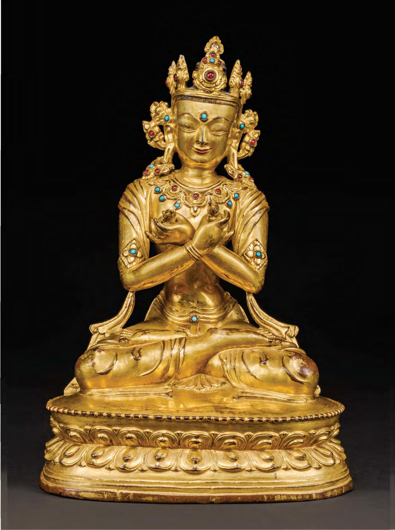 Compare with a Manjughosa held in the Shalu monastery, published in von Schroeder, , 2001, pp.959, no.229C. Also see a 14th century Vajradhara in the Jokhang in Lhasa, (ibid., p. 962, no. 231E), and a closely related gure in scale and detail sold at Sotheby’s, New York, 23 March 2007, lot 55.