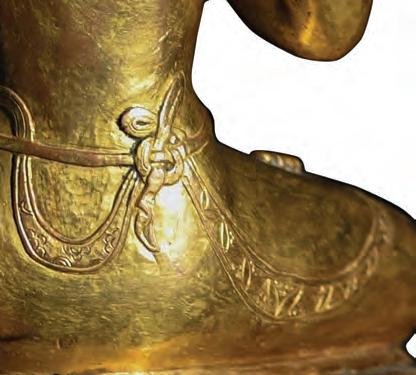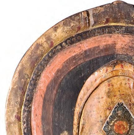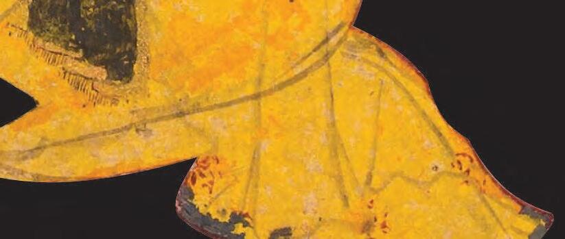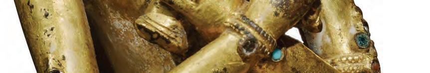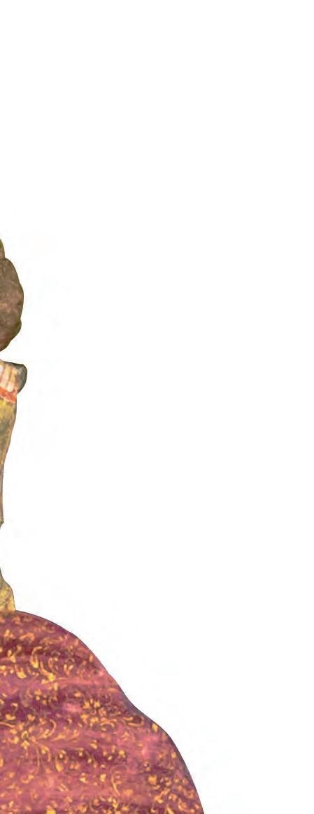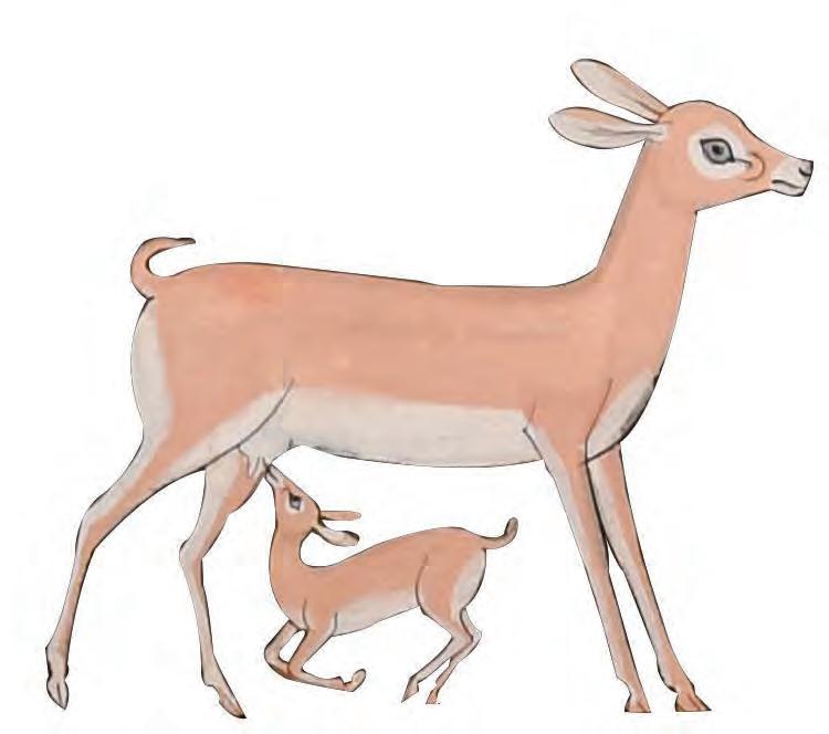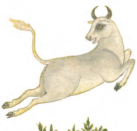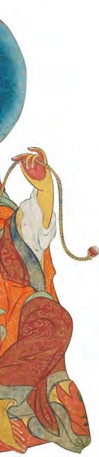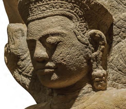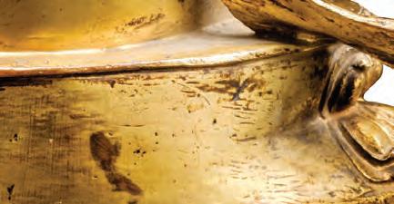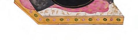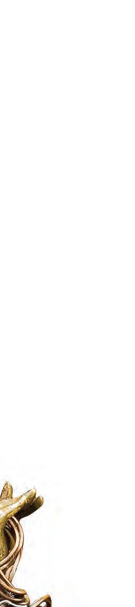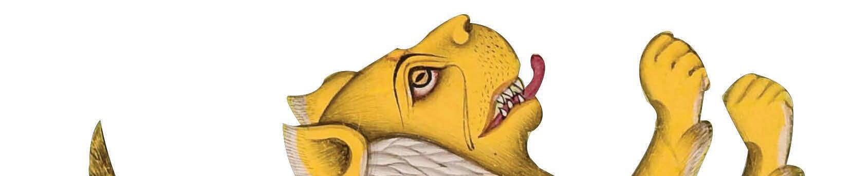Amidst a rippling current, Vishnu rescues the king of elephants Gajendra from a crocodile makara. Gajendra had gone to bathe in a lotus lled lake when the makara caught the elephant, dragging him down into the water. e elephant struggled against the crocodile with all of his strength, but with each attempt at escape the crocodile’s grip tightened. In a nal e ort to thwart his demise, Gajendra cried out for Vishnu to save him, grabbing a lotus in his trunk to o er to the god. Vishnu heard the elephant’s pleas and appeared