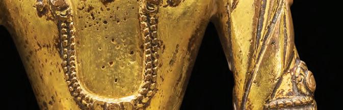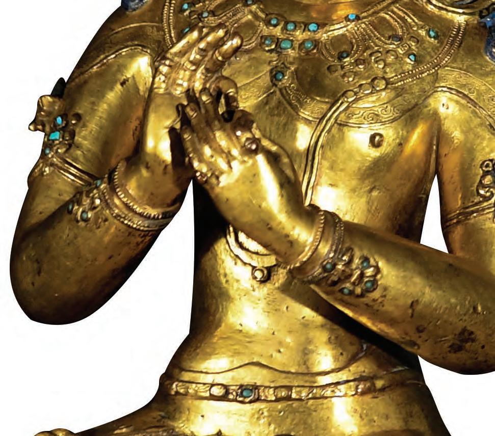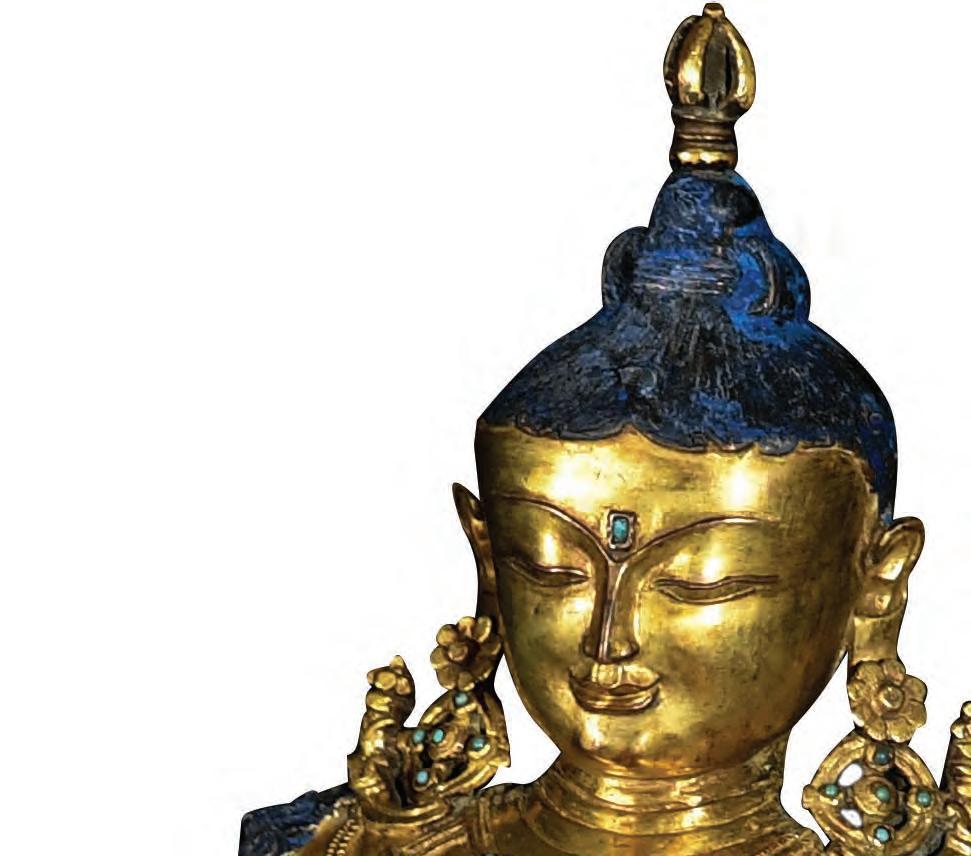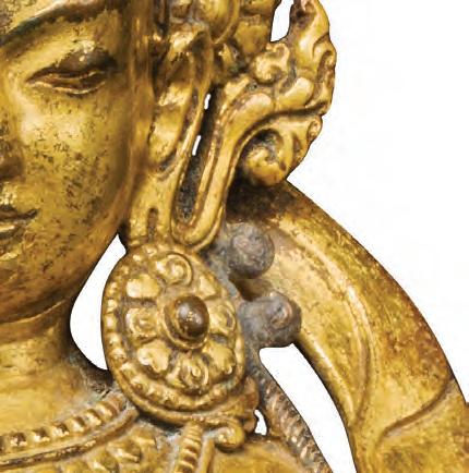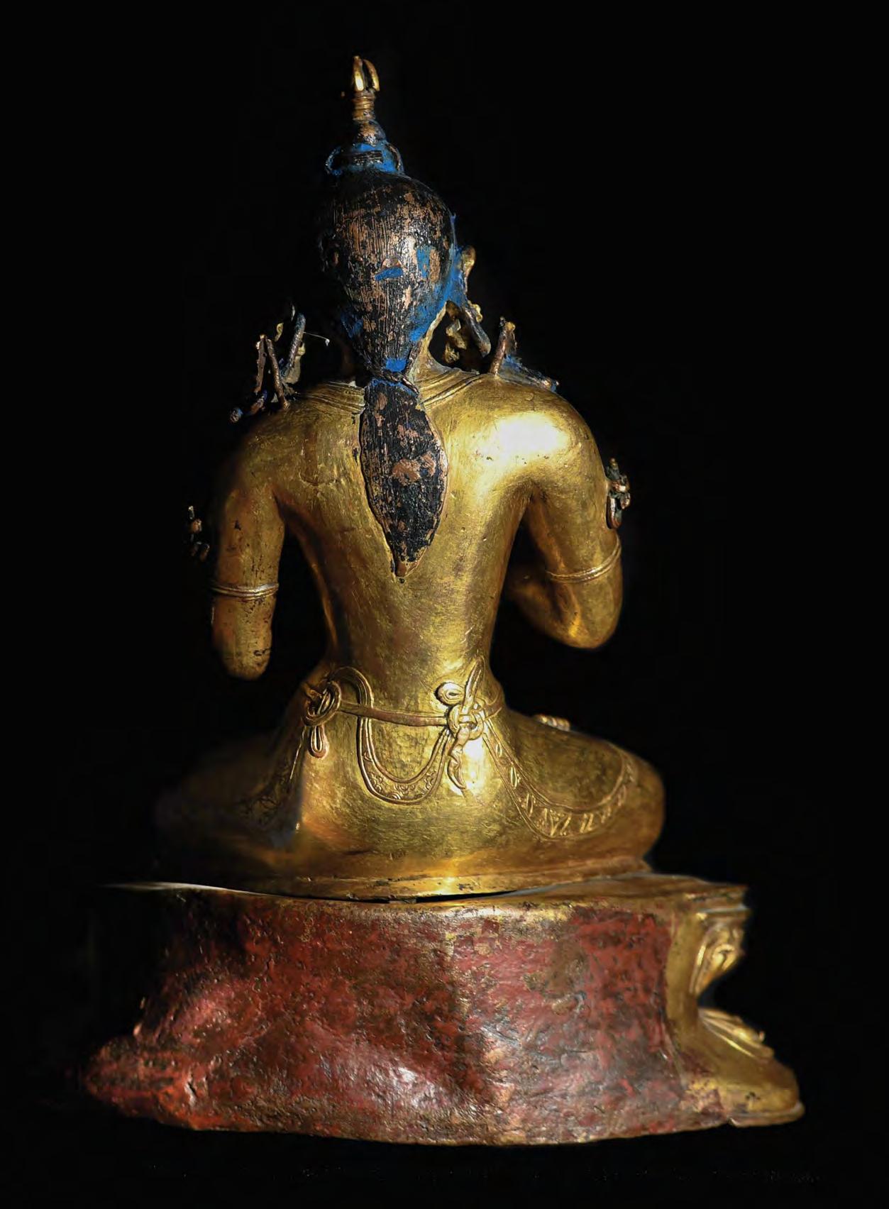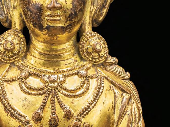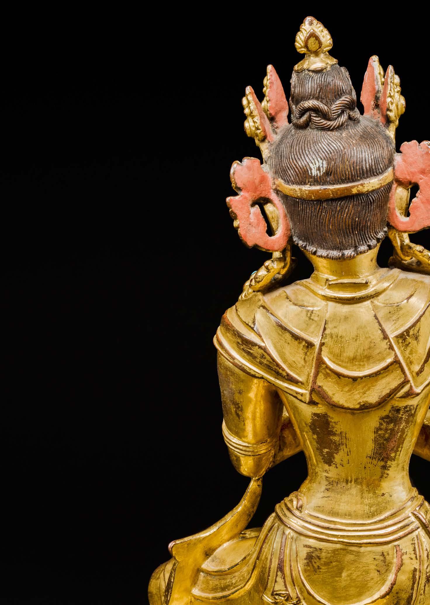 在早期的西藏,鑄造如此體量的鎏金銅像,不僅需要豐厚的財資基礎,更需要篤定的信仰支撐。歷史千轉百回, 而這份千年前的虔誠恭敬如今通過這件藝術品,完完整整地呈現在我們面前,溫潤而又充滿力量。
