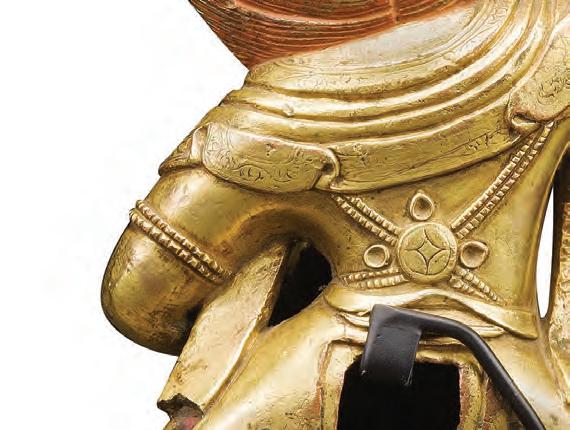 整尊造像雕工十分細膩,栩栩如生,威猛之氣十 足。原配手持物完整,頗為難得。堪稱同類造像 中極上品。