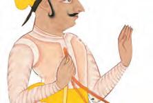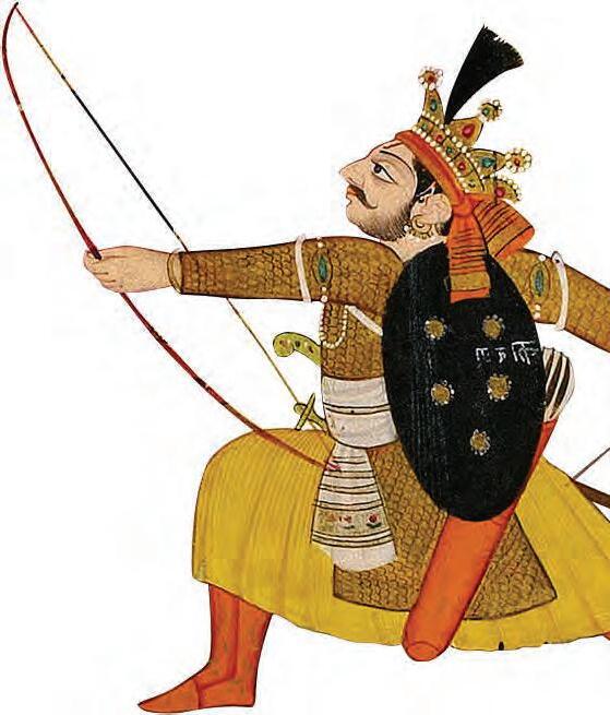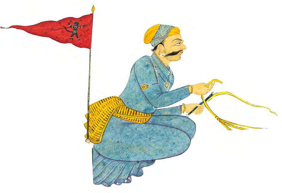 Hamir) composed by the bard Sarangdhar, relates the story of Raja Hamir Dev, the heroic but arrogant Chauhan ruler of Ranthambore, who battled with Alauddin Khilji, the Sultan of Delhi. is painting is closely related to a set of twenty-one illustrations to a Hamir Hath series, which were painted by Sajnu in 1810 as a present for Raja lsvari Sen of Mandi. Sajnu presented these to the Mandi ruler a er having le Kangra and his former patron Sansar Chand. e tale of Hamir is strikingly similar to that of Sansar Chand, the despotic ruler of Kangra. It involves the siege of an obdurate ruler in a vast fortress surrounded by dizzy precipices, quite like the Kangra fort. with a disastrous