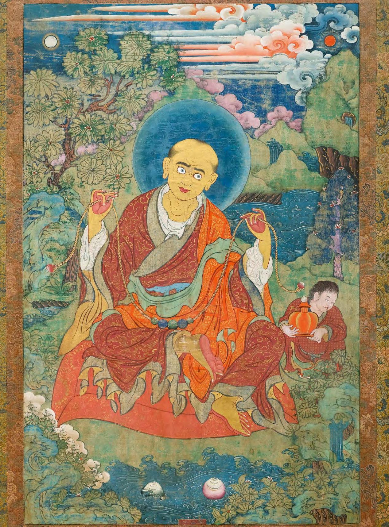 Tsongkhapa, also known as Je Rinpoche, was born in the Amdo region of Tibet in 1357. He was a highly respected Buddhist scholar and is credited as being the founder of the Gelug Buddhist sect, known as the “Yellow Hat” sect, one of the most powerful and widespread in the Buddhist religion. Revered as an incarnation of the bodhisattva Manjushri, he was reported to have seen and conversed with the deity from a young age.