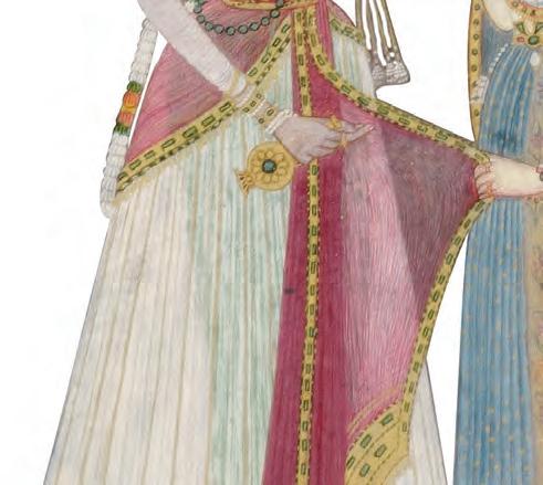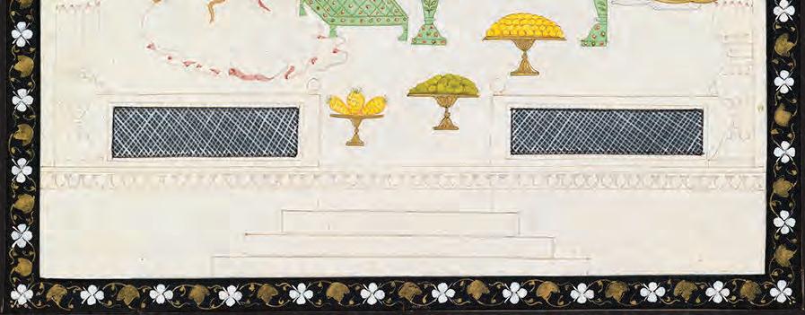 the ‘jigsaw-puzzle’ rocks, the floral motifs of the carpets, and the juxtaposition of the bright colours of the dresses, carpets and tent panels against the pastel colours employed for the architecture and the rocks. The composition of hi painting is also strikingly similar to ‘Hamir and the dancing girl’ from the presentation series mentioned above. For comparable illustrations and further discussion on the series, see Archer 1973, Vol. I, pp. 360-362, Vol. II, fig. 42(i).(ii), pg. 273. For another folio from this series which sold at auction, see Christie’s New York, 23 September 2004, lot 167.