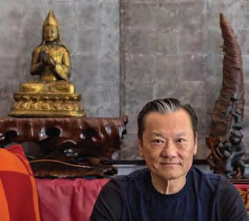 Joel Chen, a renowned antiques and mid century design dealer in Los Angeles, has filled his great room with collected treasures.