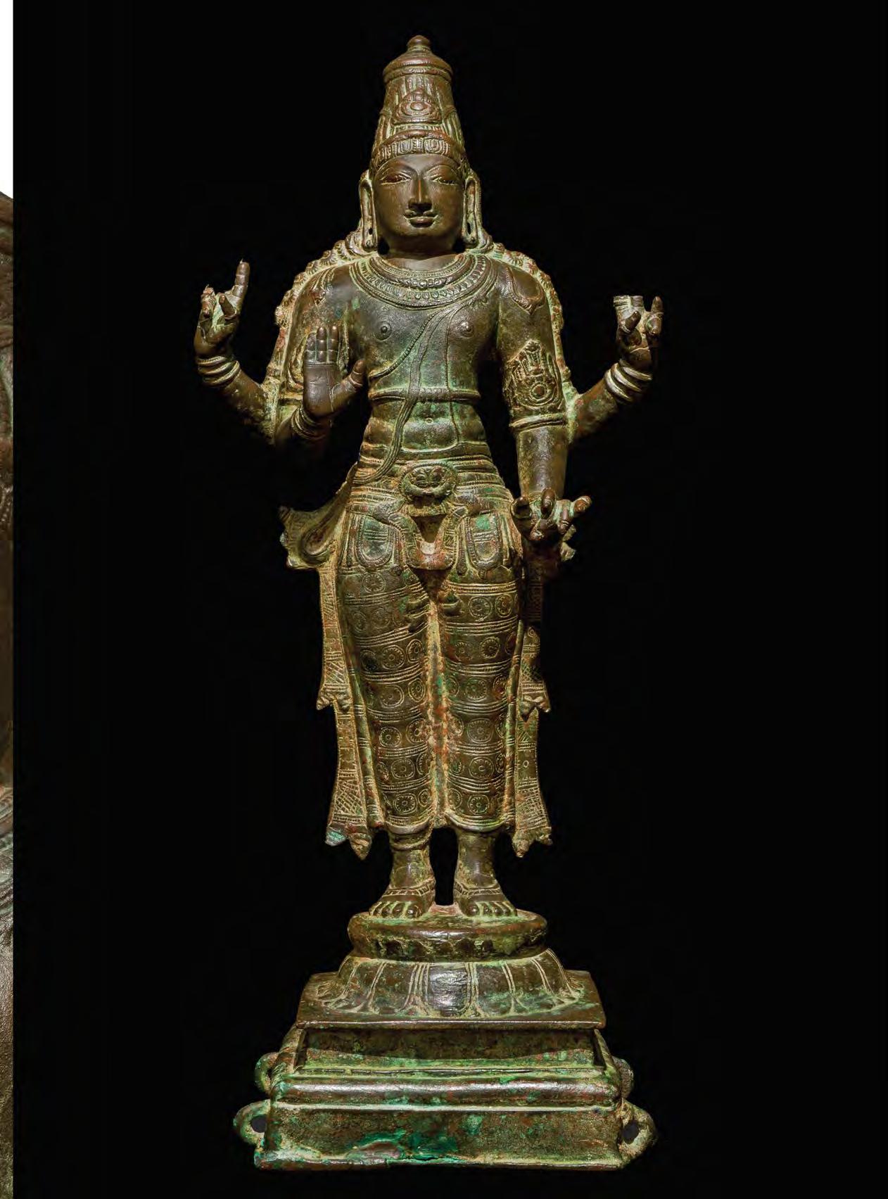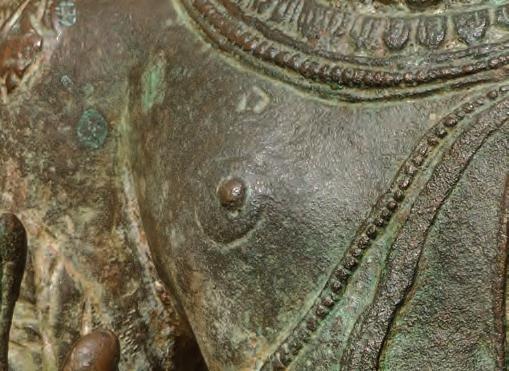 o r he eco i he le el e m o r i im ge o i re o h ill r e i r i l he r o e l ei e 1974 l 213 214 i c e l 214-21 here he o e he moo h l i i h m ke he ig re e ce io ll gr ce l a description which applies equally to the current sculpture. All three share the same combination of powerful standing posture and graceful curving form, and similar design motifs including the jewelery and other adornments and the intricate floral designs on the dhoti. o e h e W o im l r e o rce h i e i ie hi iece r re orm o r i r her h r