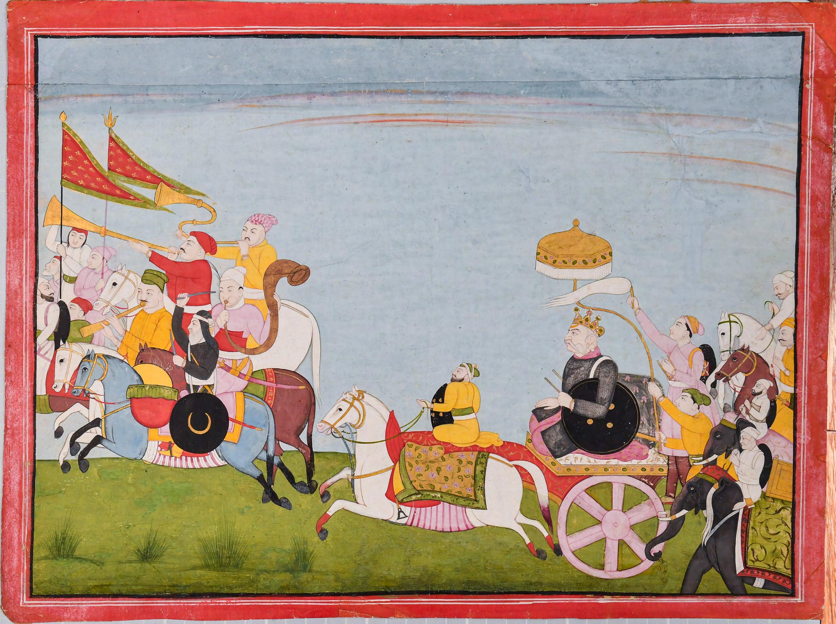 Mandi, North India heightened with gold on paper olio number 16, bearing the royal Mandi library stamp Image: 12 5/8 x 17 3/4 in. (32 x 35 cm.)