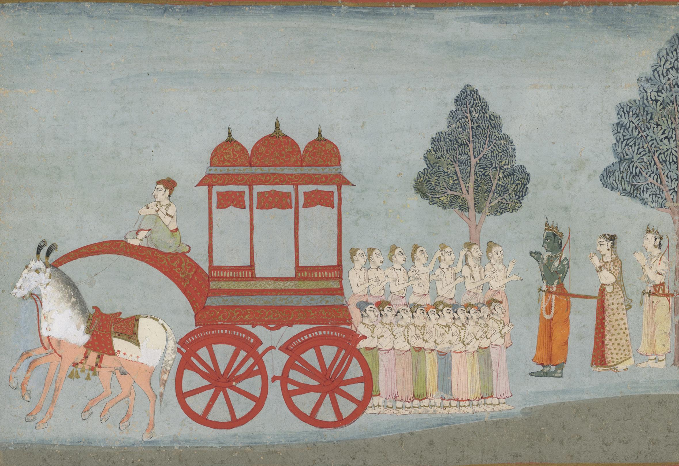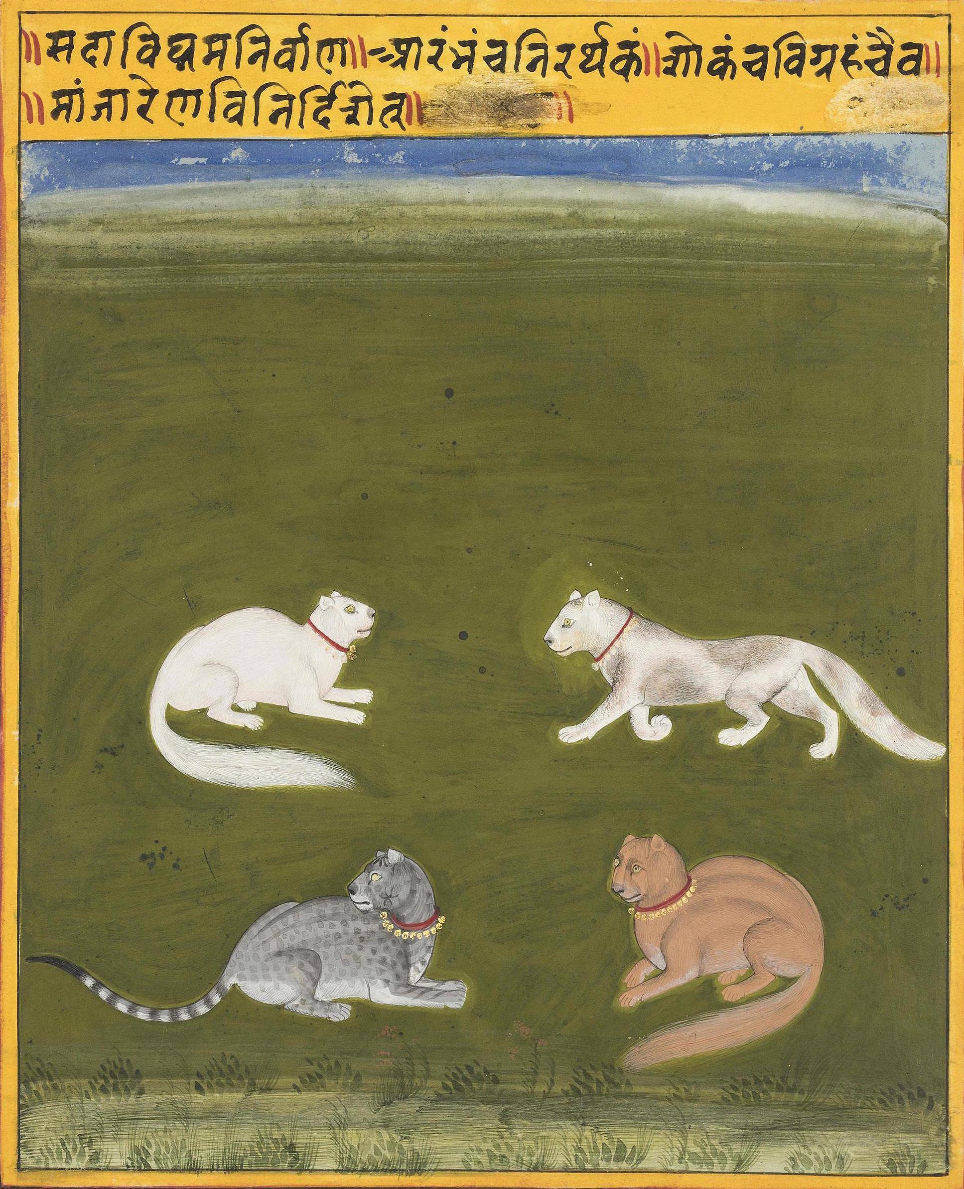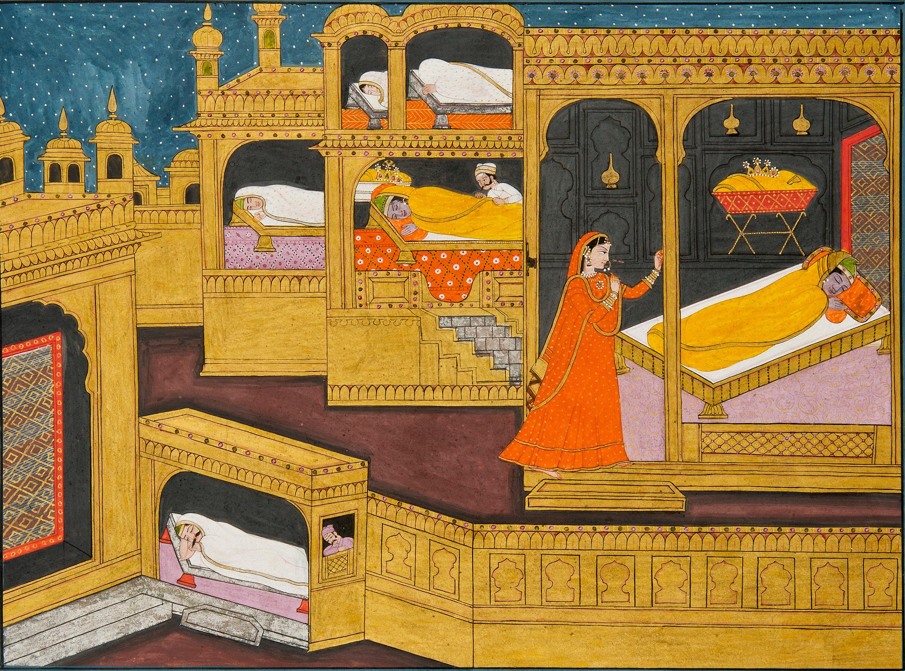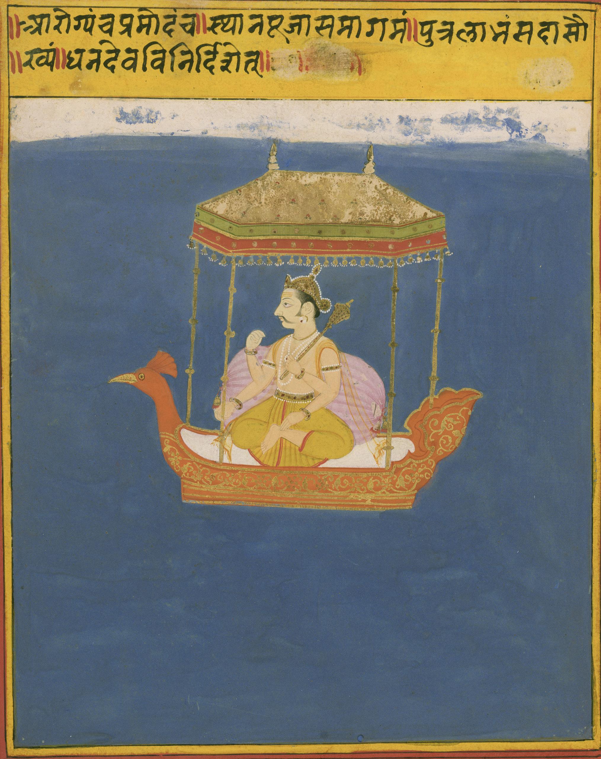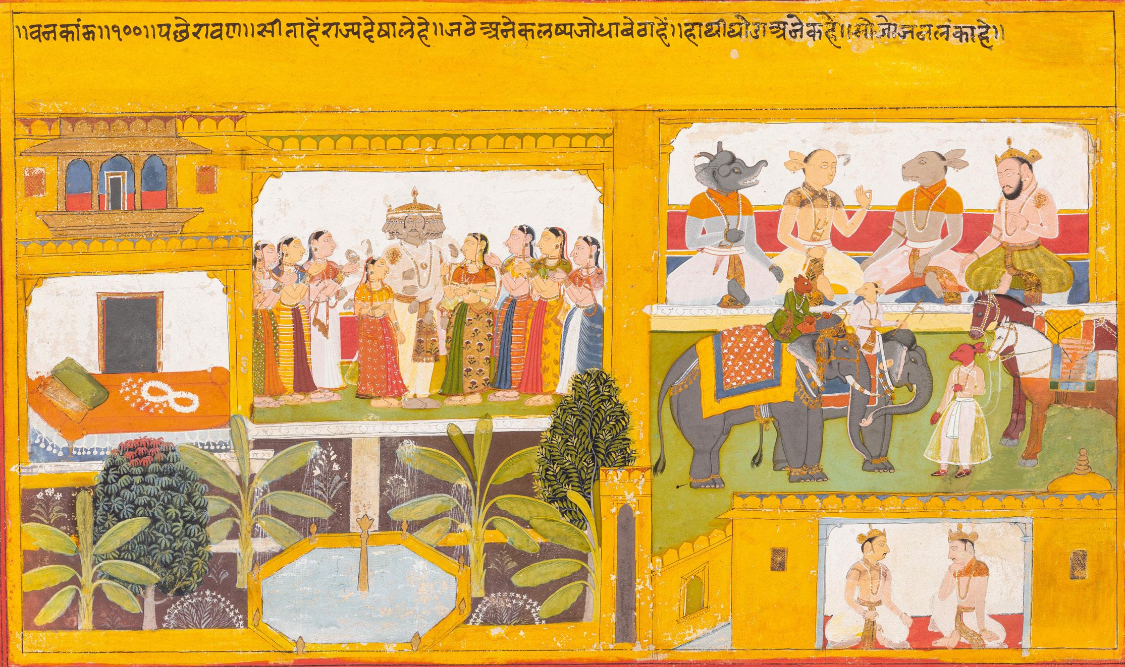 The present painting closely resembles the style of a widely dispersed manuscript completed in 1714 in honor of Maharana Sangram Singh II of Mewar (r. 1710–34) at the Royal Ontario Museum (971.281.4). The series consists of 271 folios and the present is numbered ‘137.’ Dr. Gusharan Sidhu has identified ‘144’ of this series, which he gifted to the Asian Museum of Art, San Francisco (acc. 1990.217).