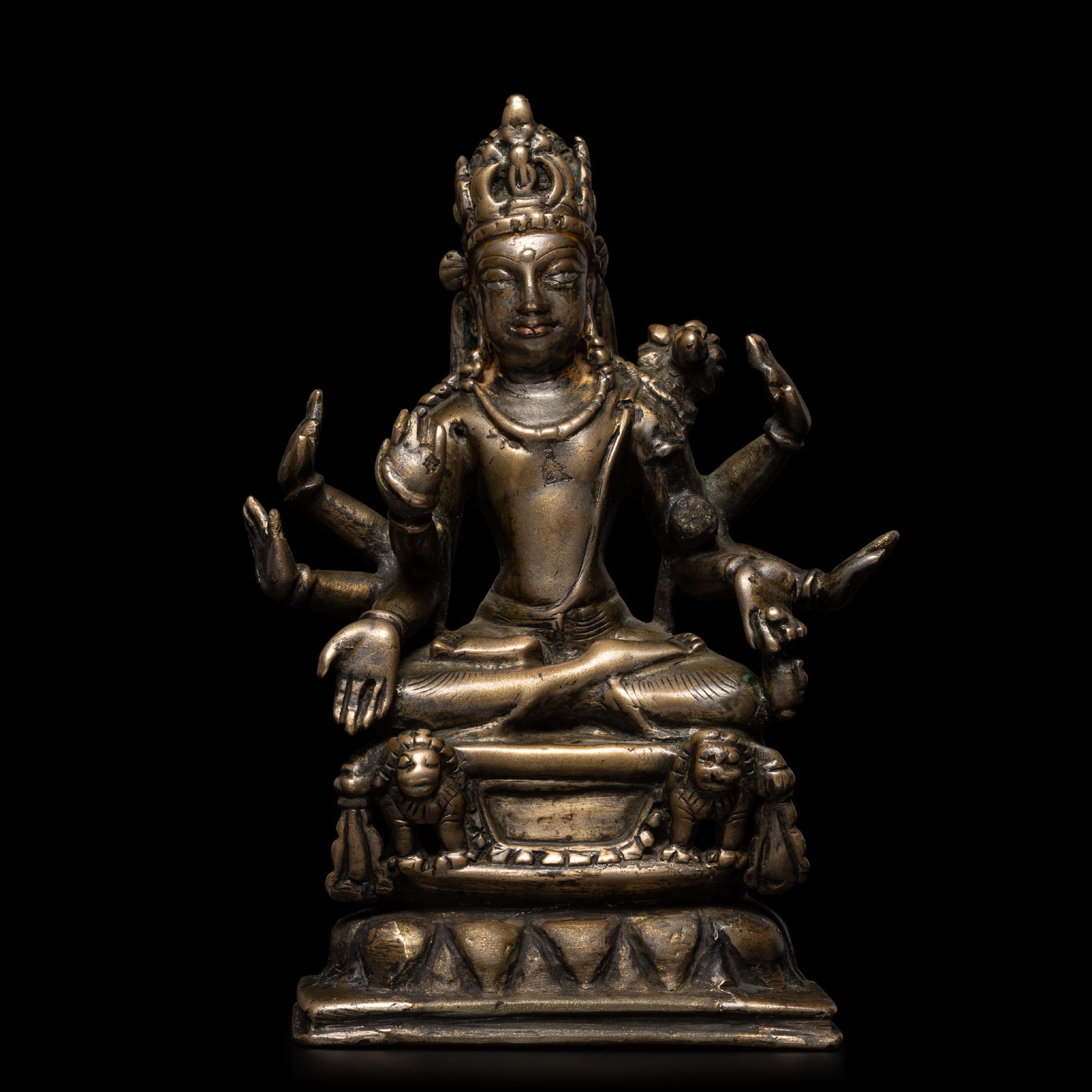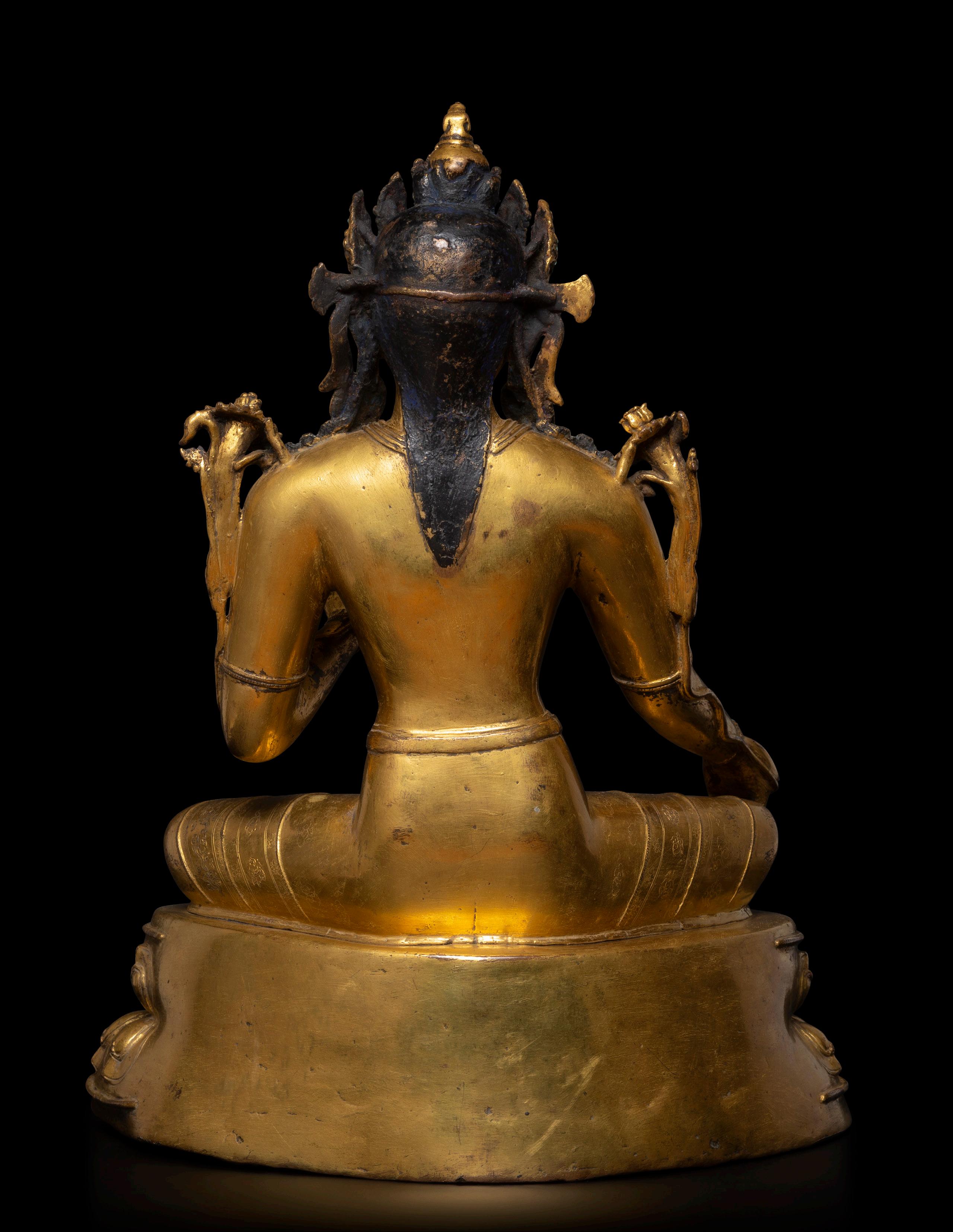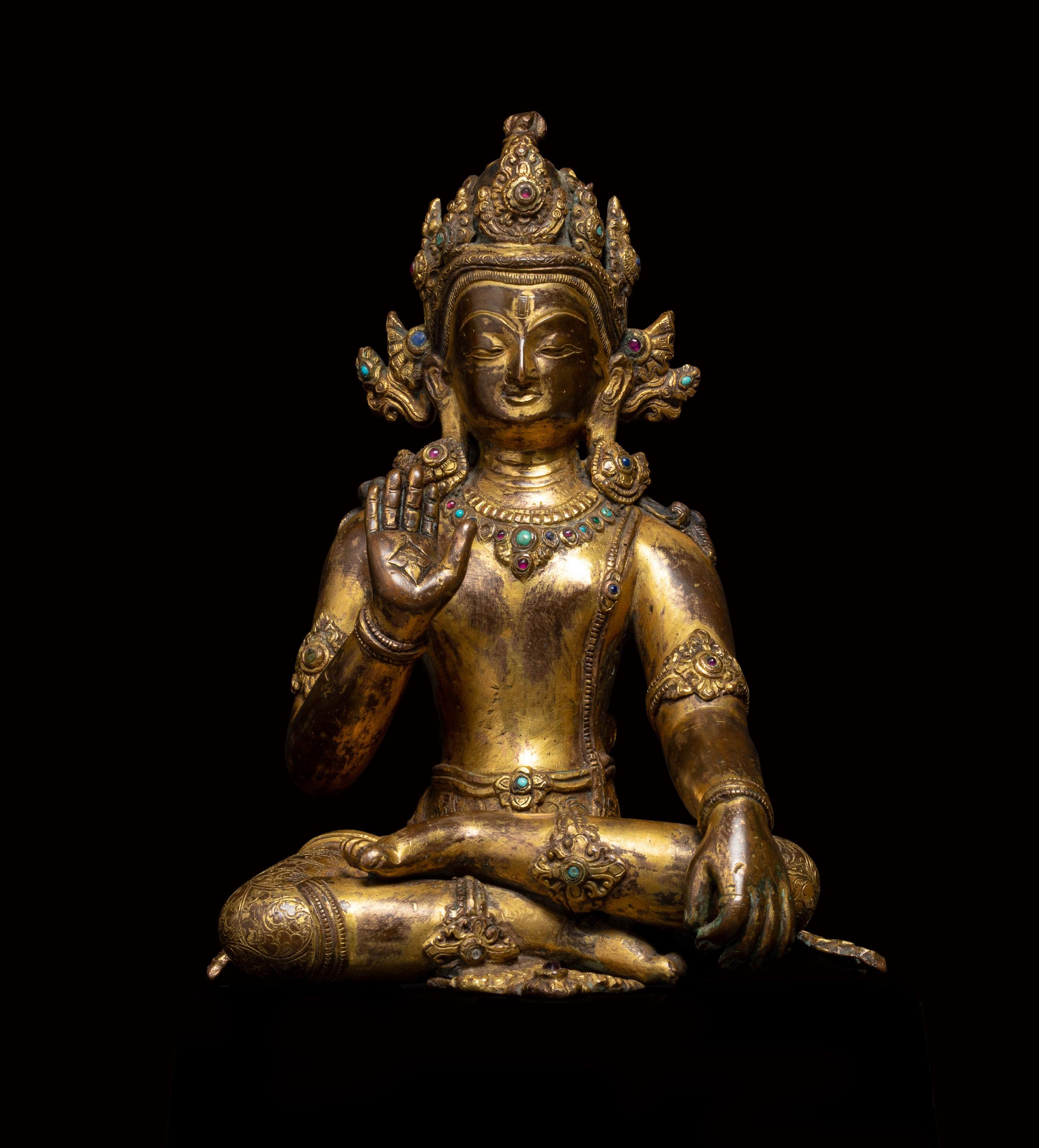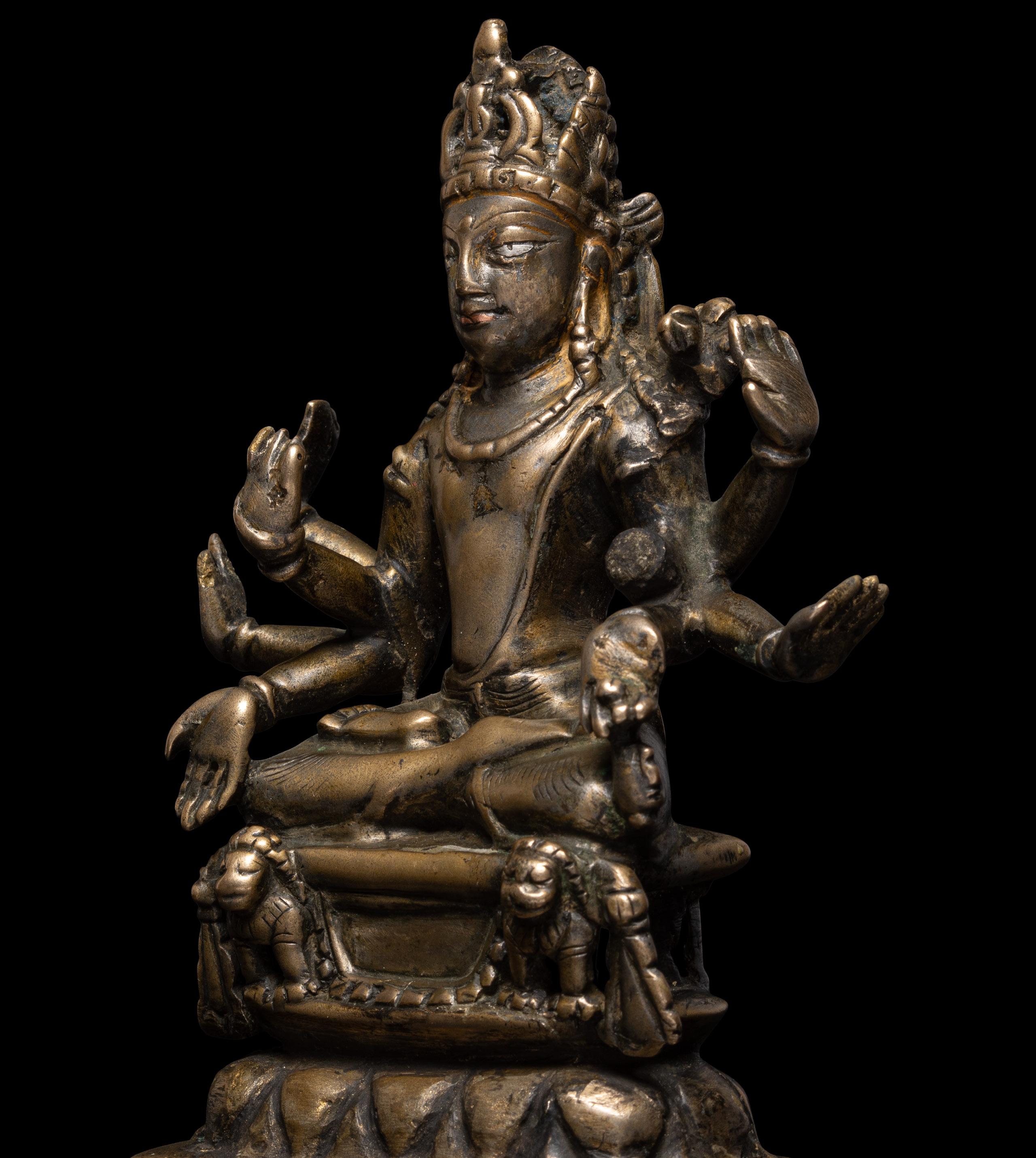 would have been mounted on a larger structure, likely a tashi gomang or a stupa of ‘many auspicious doors.’ The similarities between the present sculpture and the Rubin example, in terms of craftsmanship and style are significant as the Rubin sculpture more directly evidences the significant relationship between Nepalese craftsmanship and Tibetan Buddhist worship.