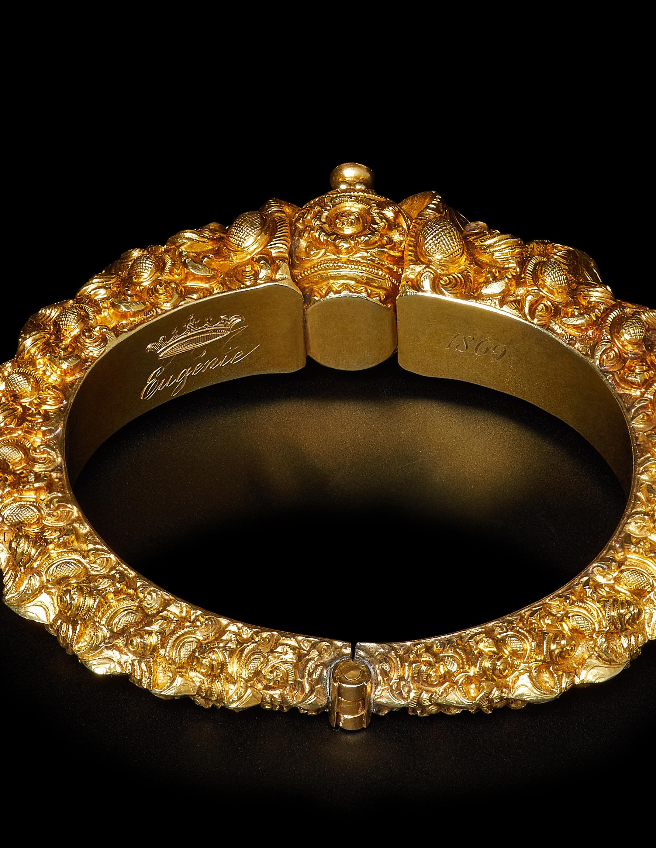 Compare the present sculpture to a fourteenth-century sculpture of Chakrasamvara in union with Vajrayogini from Central Tibet at the Rubin Museum of Art (acc. C2005.16.16) which has repeatedly been attributed to the hand of a Nepalese artist in exhibitions and publications (see Collection Highlights: The Rubin Museum of Art, New York, 2014, p. 106). The Rubin sculpture appears to have been crafted in Tibet for a number of reasons including the appearance of the metal alloy beneath the gilding and the fixtures revealed on the backside of the figure and base which indicate that it
