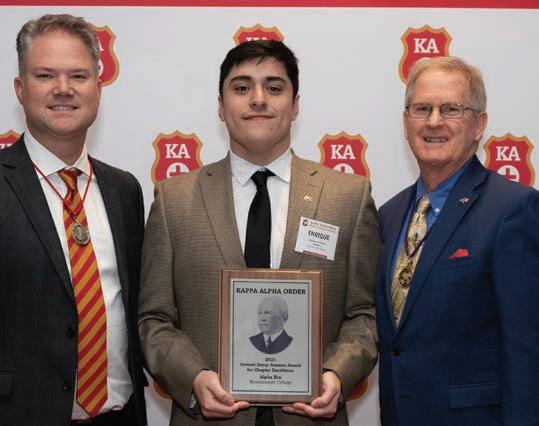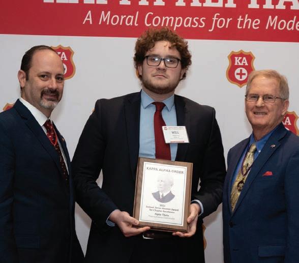 Once the COVID-19 pandemic became a reality, members and all college students were forced to learn di erently, interact with friends and family di erently, and in many cases, live di erently from day to day. The Order provided many resources to our chapters, including virtual chapter visits and crucial leadership training for chapter o cers to help them navigate chapter issues that were not even contemplated mere months ago. But, with mental health issues on the rise (particularly among college students), every brother of Kappa Alpha continued to have free access to support through the Talkspace app. The support of alumni to the KAOEF made these resources possible.