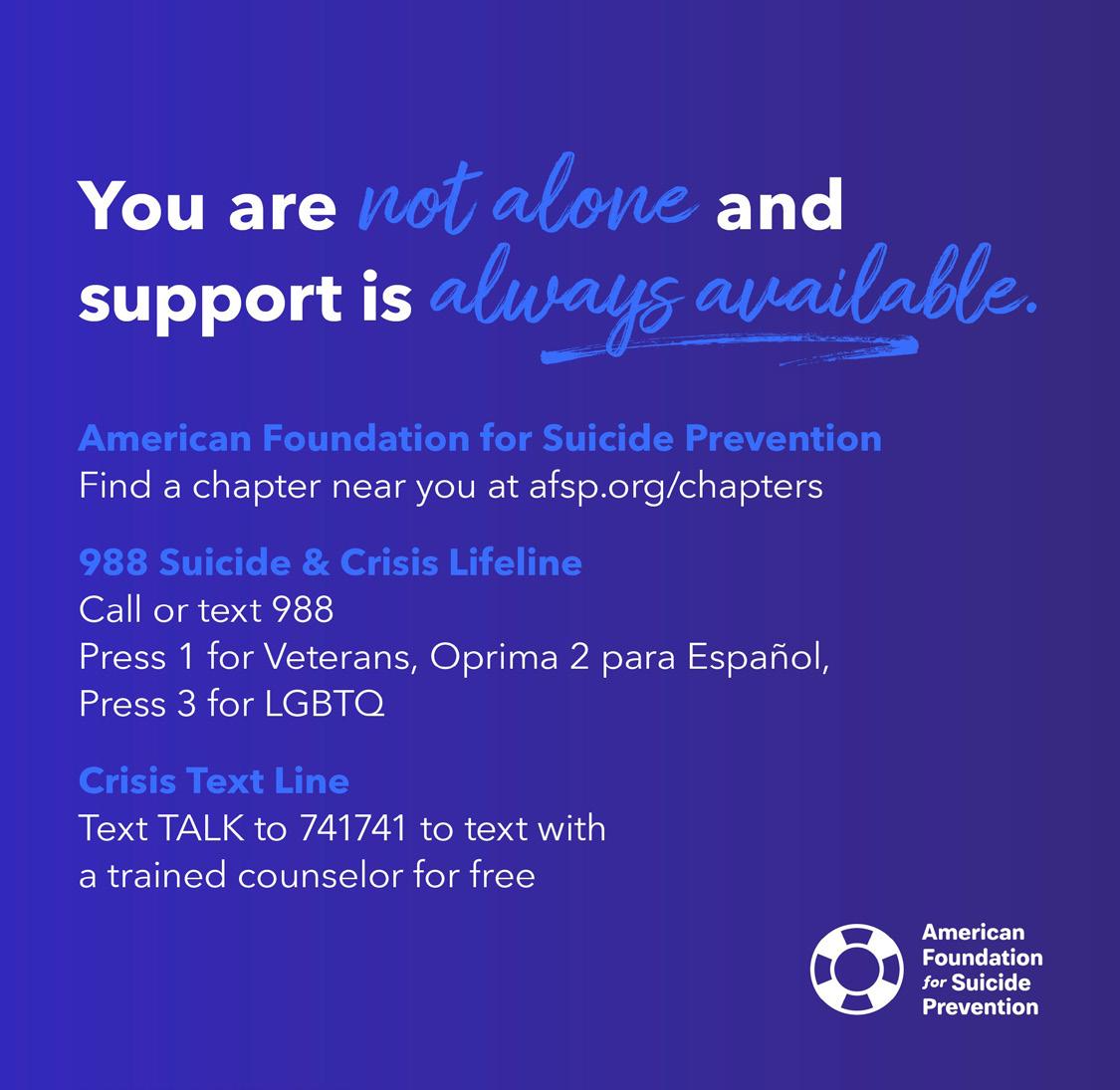 The American Foundation for Suicide Prevention offers help for anyone and everyone