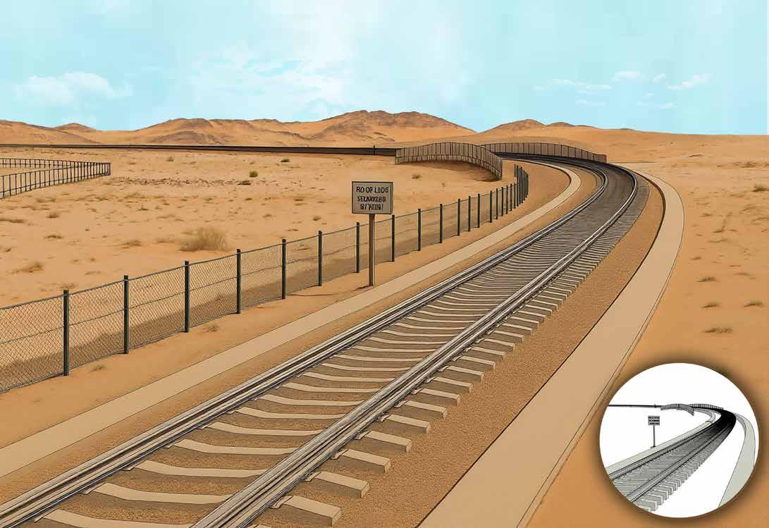 Our scope covers the design-and-build contract for the Liwa Chord and the passing-loops area (Al Faya, km 5, km 29) on the Etihad Rail passenger & freight network.