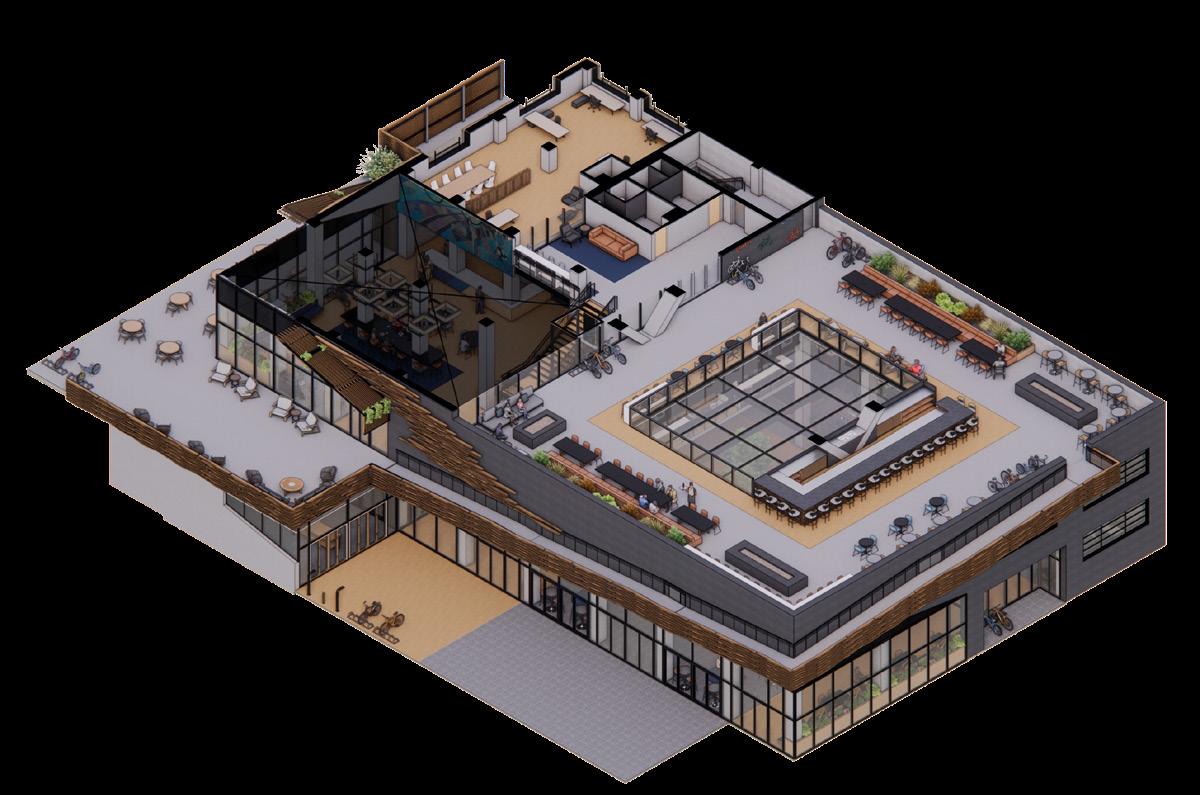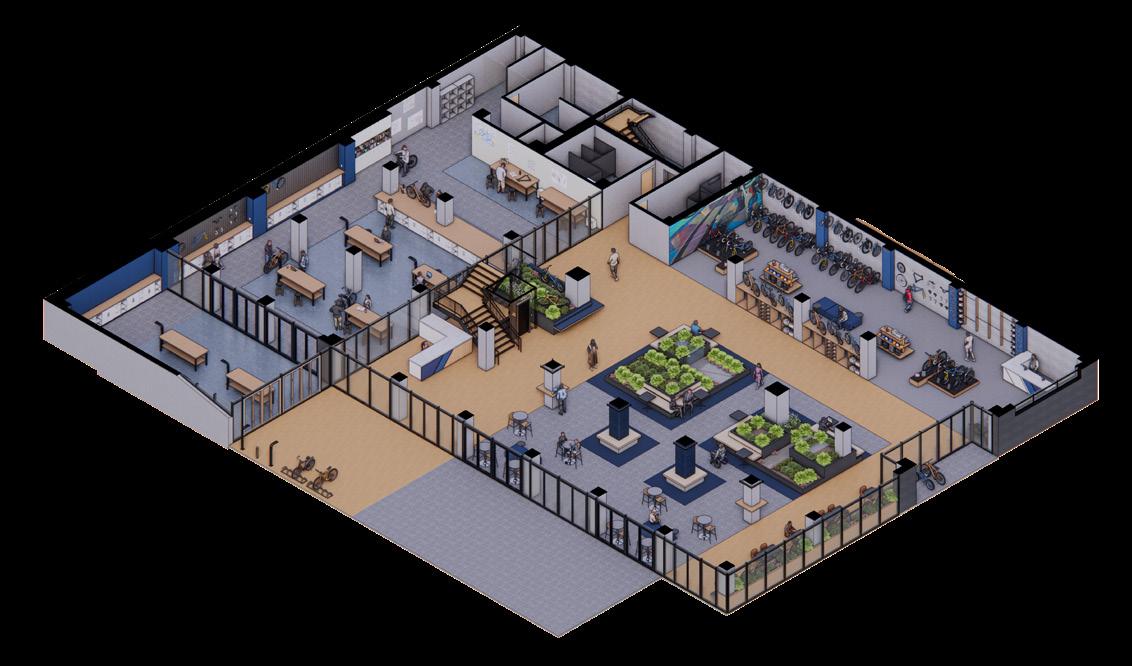 • cafe • kitchen • lounge • nature atrium / community space • bike shop retail • bike workshop